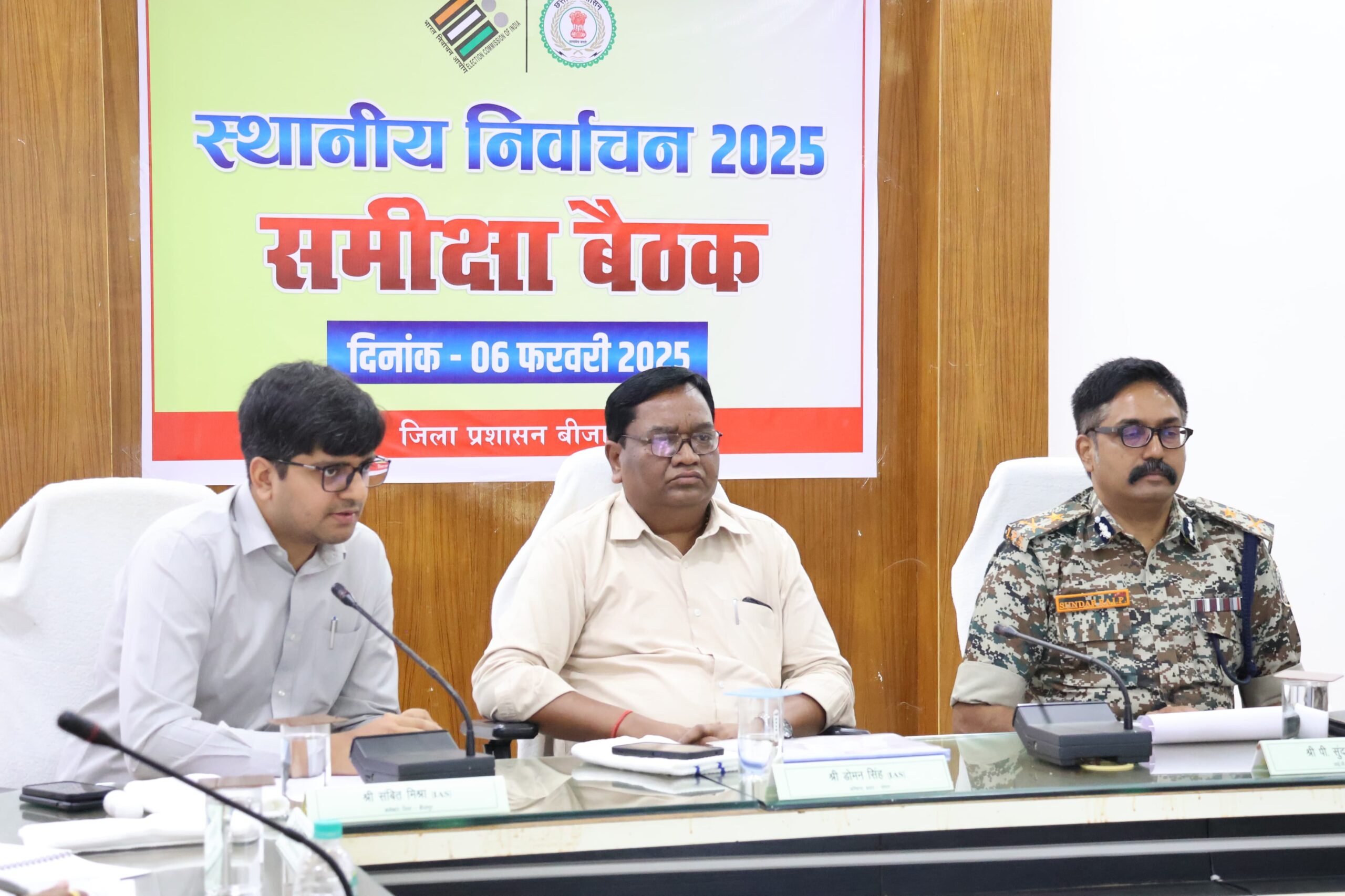 बीजापुर – कमिश्नर बस्तर श्री डोमन सिंह और आईजी बस्तर रेंज श्री सुंदरराज पी. ने बीजापुर जिले के प्रवास पर नगरीय निकाय एवं त्रिस्तरीय पंचायतों के आम निर्वाचन 2025 के अंतर्गत मतदान पूर्व तैयारियों की जायजा लेकर अधिकारियों की बैठक में आवश्यक व्यवस्थाओं के बारे में विस्तृत समीक्षा की। इस दौरान निर्वाचन से सम्बंधित सभी तैयारी एवं व्यवस्थाओं को दुरुस्त किए जाने के निर्देश दिए। साथ ही जाबो अभियान के तहत मतदाता जागरूकता कार्यक्रम को बेहतर ढंग से चलाए जाने के निर्देश दिए। नगरीय निकाय के अंतर्गत ईव्हीएम डेमोस्ट्रेशन के जरिए ज्यादा से ज्यादा मतदाताओं को जानकारी देने के निर्देश दिए। कमिश्नर श्री डोमन सिंह ने बैठक में अधिकारियों से कहा कि लोकतंत्र में निर्वाचन कार्य सर्वाधिक महत्वपूर्ण है। इसे पूरी गम्भीरता एवं जिम्मेदारी के साथ सुनिश्चित करने के लिए टीम भावना के साथ दायित्व निर्वहन करें। सभी आवश्यक तैयारी एवं व्यवस्थाओं को बेहतर बनाएं। अंदरूनी इलाकों के मतदान केंद्रों पर ज्यादा ध्यान देवें और सुचारू रूप से मतदान एवं मतगणना संपन्न करवाने के लिए समन्वित पहल करें। उन्होंने मतदान दलों के प्रशिक्षण तथा मतदान सामग्री, मतदान दलों के परिवहन एवं अन्य व्यवस्था को भी बेहतर बनाने के निर्देश दिए। बैठक में पुलिस महानिरीक्षक श्री सुंदरराज पी. ने स्थानीय निर्वाचन में लोगों की अधिक भागीदारी के मद्देनजर इसे सजगता के साथ सम्पन्न करवाने की जिम्मेदारी निभाएं। सभी अधिकारी एवं कर्मचारी आपसी समन्वय कर निर्वाचन कार्य को सर्वाेच्च प्राथमिकता देकर दायित्व निर्वहन करें। जिला पंचायत के सभाकक्ष में आयोजित बैठक में कलेक्टर श्री संबित मिश्रा ने नगरीय निकाय एवं त्रिस्तरीय पंचायत निर्वाचन को सुचारू रूप से संचालन एवं शांतिपूर्ण संपन्न कराए जाने के सम्बन्ध में आवश्यक तैयारियों के सम्बन्ध में जानकारी प्रदान किया। उन्होंने जिले के समस्त मतदान केन्द्रों की भौतिक स्थिति से अवगत कराया और संवेदनशील मतदान केंद्रों के लिए आवश्यक व्यवस्था सुनिश्चित करने की बात कही। वहीं पुलिस अधीक्षक डॉ जितेन्द्र यादव ने जिले में स्थानीय निर्वाचन के लिए सुरक्षा व्यवस्था सम्बन्धी कार्ययोजना की जानकारी दी। बैठक में सीईओ जिला पंचायत श्री हेमन्त रमेश नन्दनवार तथा निर्वाचन से जुड़े समस्त नोडल अधिकारी मौजूद थे।