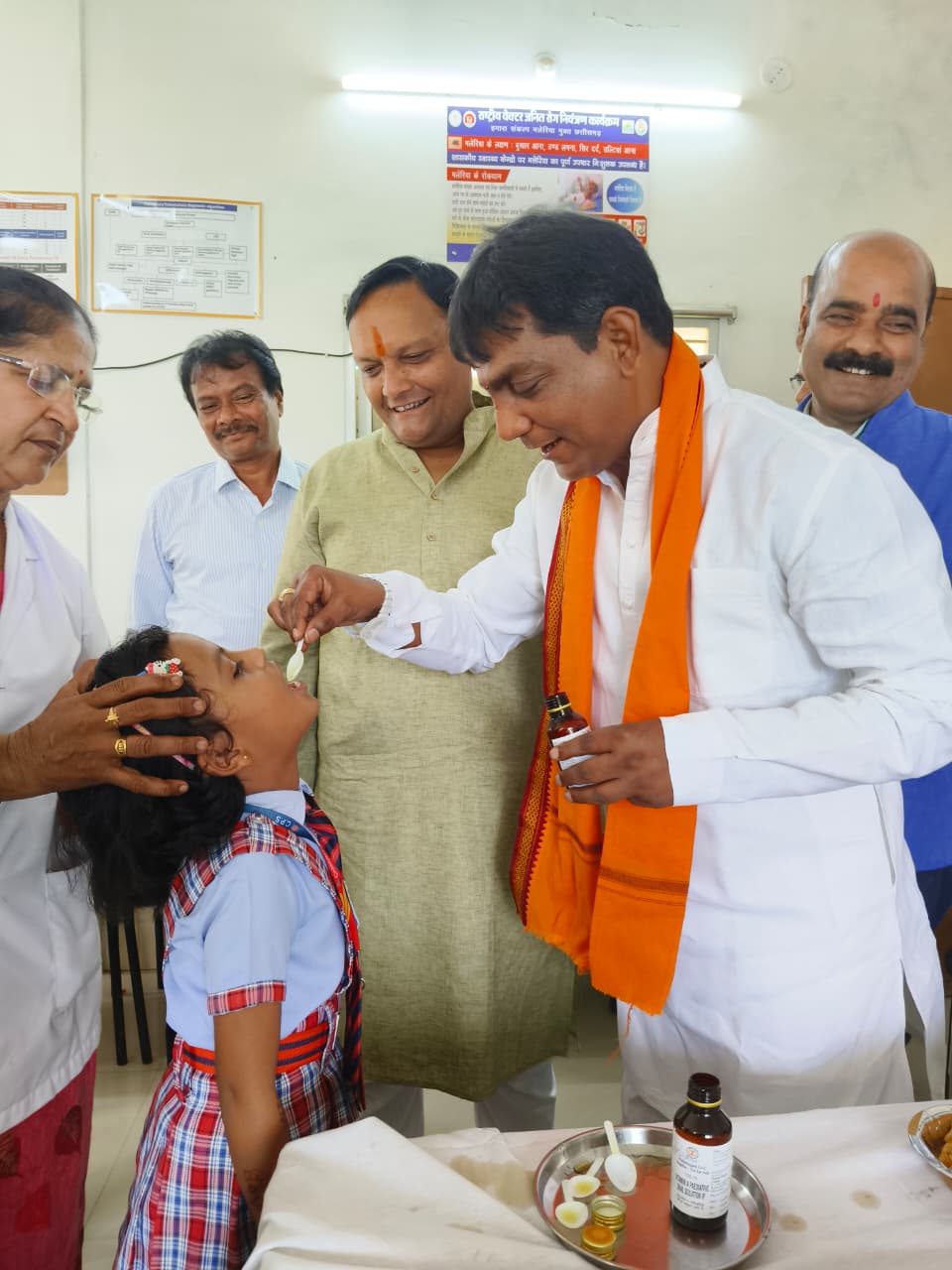 महासमुंद :- जिला स्तरीय शिशु संरक्षण माह अगस्त-सितम्बर 2025 का शुभारम्भ विधायक योगेश्वर राजू सिन्हा द्वारा बच्चों को विटामिन ए की दवा पिलाकर किया गया। जिला स्तरीय शिशु संरक्षण माह का आयोजन आज शहरी प्राथमिक स्वास्थ्य केंद्र नयापारा महासमुंद में किया गया। शुभारम्भ अवसर पर नगर पालिका अध्यक्ष निखिलकांत साहू, विधायक प्रतिनिधि अग्रज शर्मा, पूर्व पार्षद संदीप घोष द्वारा भी बच्चों को विटामिन ए की दवा पिलाई गई।कार्यक्रम के दौरान मुख्य चिकित्सा एवं स्वास्थ्य अधिकारी डॉ. आई. नागेश्वर राव एवं टीकाकरण अधिकारी डॉ. अरविन्द गुप्ता द्वारा उपस्थित जनप्रतिनिधियों एवं नागरिकों को शिशु संरक्षण माह के गतिविधियों के संबंध मे जानकारी दी गई। उन्होंने बताया कि 29 अगस्त से 30 सितम्बर 2025 तक शिशु संरक्षण माह का आयोजन प्रत्येक मंगलवार एवं शुक्रवार को किया जाएगा। जिसमें 9 माह से 5 वर्ष तक के सभी हितग्राही बच्चों को विटामिन ए की खुराक दी जाएगी। इसी तरह 6 माह से 5 वर्ष तक के सभी हितग्राही बच्चों को आयरन फॉलिक एसिड सिरप दिया जाएगा। साथ ही नियमित टीकाकरण अंतर्गत सभी पात्र बच्चे एवं गर्भवती महिलाओं का टीकाकरण एवं सभी गर्भवती महिलाओं का ए.एन.सी. चेकअप किया जाएगा। इस अवसर पर मेडिकल स्टाफ तथा बच्चे और पालकगण मौजूद थे।