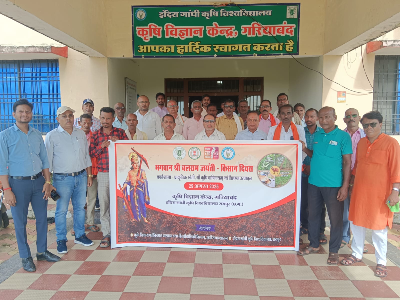 गरियाबंद – कृषि विज्ञान केंद्र गरियाबंद के द्वारा भगवान श्री बलराम जयंती के अवसर पर आज किसान दिवस का आयोजन भारतीय किसान संघ के अध्यक्ष माधव सिंह एवं अन्य पदाधिकारी अभिमन्यु ध्रुव, राजेंद्र सिंह राजपूत, गंगाराम सिंह, ललित निषाद एवं प्रगतिशील कृषको की गरिमामय उपस्थिति में किया गया। इस अवसर पर कृषि विज्ञान केंद्र के संस्था प्रमुख डॉ मनीष चौरसिया वैज्ञानिक मनीष आर्य तुषार मिश्रा कृषि विभाग से सहायक संचालक कृषि बि. आर. साहू एवं अन्य वैज्ञानिक और अधिकारी उपस्थित रहे। कार्यक्रम का प्रारंभ सम्माननीय अतिथि गणों के द्वारा भगवान श्री बलराम एवं छत्तीसगढ़ महतारी के पूजा अर्चना से किया गया। कार्यक्रम के मुख्य अतिथि माधव सिंह एवं अन्य पदाधिकारीयो के द्वारा भगवान श्री बलराम जयंती के अवसर पर मनाया जा रहे हैं एक दिवासिय किसान दिवस पर कृषकों को संबोधित करते हुए प्राकृतिक खेती, गौ कृषि वाणिज्यिक एवं तिलहन उत्पादन को बढ़ावा देने हेतु प्रोत्साहित किया एवं कृषि वैज्ञानिकों के द्वारा दिए जाने वाले तकनीकी मार्गदर्शन एवं सलाह के अनुरूप खेती करने का सुझाव कृषकों को दिया गया। केंद्र के संस्था प्रमुख डॉ मनीष चौरसिया के द्वारा भगवान श्री बलराम जयंती के अवसर पर किसान दिवस के रूप में मनाया जा रहे एकदिवसीय कार्यशाला के बारे में महत्वपूर्ण जानकारी दिया गया एवं विस्तृत रूप से कार्यक्रम की रूपरेखा के बारे में जानकारी देते हुए केंद्र में संचालित प्राकृतिक खेती एवं तिलहन उत्पादन के संबंध में किए जा रहे प्रदर्शन के बारे में बताया गया। केंद्र के वैज्ञानिक श्री मनीष आर्य के द्वारा फसल परिवर्तन को अपनाते हुए तिलहन एवं दलहन उत्पादन के संबंध में कृषकों को विस्तृत रूप से प्रशिक्षण दिया गया एवं फसल परिवर्तन को बढ़ावा देने के लिए रबी एवं ग्रीष्मकालीन धान की जगह पर तिलहन एवं दलहन फसलों की वैज्ञानिक तरीके से खेती करने का विस्तृत रूप से जानकारी देते हुए प्राकृतिक खेती एवं जैविक खेती के महत्व के बारे में महत्वपूर्ण जानकारी साझा किया गया। केंद्र के वैज्ञानिक श्री तुषार मिश्रा के द्वारा प्राकृतिक खेती के विभिन्न अवयव बीजअमृत घनजीव अमृत जीवामृत ब्रह्मास्त्र अग्निअस्त्र निर्मास्त्र आदि के बारे में विस्तृत रूप से जानकारी दिया गया साथ ही कृषि विज्ञान केंद्र के प्रक्षेत्र में प्राकृतिक खेती के प्रदर्शन इकाई का अवलोकन कृषकों को कराया गया। कृषि विभाग से सहायक संचालक कृषि श्री बि आर साहू के द्वारा कृषि विभाग में संचालित कृषि से संबंधित योजनाओं के बारे में विस्तृत रूप से जानकारी दिया गया। प्रशिक्षण कार्यक्रम के दौरान प्रगतिशील कृषकों के द्वारा प्राकृतिक खेती एवं तिलन उत्पादन के संबंध में कृषिको