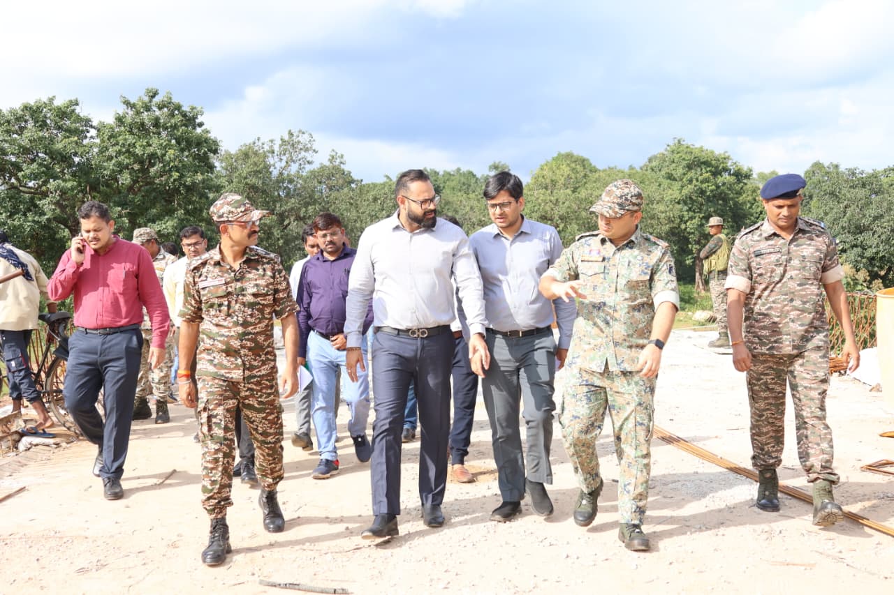 बीजापुर – बाढ़ प्रभावित क्षेत्र के अवलोकन हेतु पहुंचे जिले के प्रभारी सचिव डाॅ. सारांश मित्तर ने भैरमगढ़ ब्लाॅक के फुंडरी में निर्माणधीन उच्च स्तरीय पुल का अवलोकन किया, ज्ञात हो कि उक्त पुल का निर्माण अब अंतिम स्तर पर है। नारायणपुर और बीजापुर से आवागमन सुगम होगी वहीं दोनो जिले के दर्जनों गावों और ग्रामीणों को बहुत राहत मिलेगी।डाॅ. सारांश मित्तर ने कार्याे में तेजी लाने और गुणवत्तापूर्वक कार्य समय-सीमा में पूर्ण करने के निर्देश दिए है। इस दौरान कलेक्टर श्री संबित मिश्रा, सीईओ जिला पंचायत श्रीमती नम्रता चैबे सहित जिला एवं पुलिस प्रशासन के अधिकारीगण मौजूद थे।