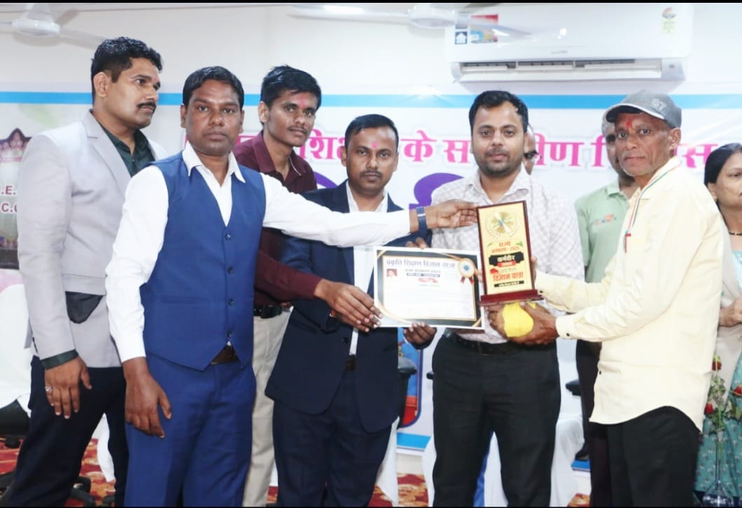 फिंगेश्वर :– प्रकृति शिक्षण विज्ञान यात्रा, छत्तीसगढ़ द्वारा अंतर्राष्ट्रीय साक्षरता दिवस के अवसर पर राज्य स्तरीय सम्मान समारोह का आयोजन प्रथम एजुकेशन फाउंडेशन, अकादमिक भवन, राखी मोड़ (चरमुड़िया), कुरूद, जिला धमतरी में किया गया। इस अवसर पर पूरन लाल साहू व्याख्याता शासकीय उच्चतर माध्यमिक शाला बिजली को शिक्षा के क्षेत्र में नवाचार, प्रकृति संरक्षण, विज्ञान प्रचार-प्रसार, स्वच्छता, स्वास्थ्य, कला, संस्कृति, समाज सेवा, महिला सशक्तिकरण, रूढ़िवाद उन्मूलन,अंधविश्वास निर्मूलन एवं जन-जागरूकता के क्षेत्रों में उत्कृष्ट योगदान हेतु चरण प्रक्षालन एवं महा आरती कर मोमेंटो, मेडल एवं प्रशस्ति पत्र प्रदान कर सम्मानित किया गया. इस कार्यक्रम के मुख्य अतिथि डॉक्टर हित नारायण टंडन सहायक प्राध्यापक प्राणी विज्ञान विभाग अध्यक्ष गुरु घासीदास शासकीय स्नातक महाविद्यालय कुरूद एवं अध्यक्षता अभिषेक शुक्ला ने किया. वहीं विशिष्ट अतिथि के रूप में पद्म श्री अजय मंडावी, कालिदास नाकाड़े खगोल विज्ज्ञान समूह रायपुर, रश्मि वर्मा आर. के.साइंस सेंटर नागपुर, नितिन कुमार पटेल अगस्त इंटरनेशनल फाऊंडेशन भोपाल, सूर्यवंशी नवाचार गतिविधि समूह एवं मोतीलाल देवांगन उपस्थित थे. पूरन लाल साहू व्याख्याता ने बताया कि इस सम्मान के पूर्व शिक्षक अलंकरण, सर्वश्रेष्ठ आचार्य, अकादमिक़ शिक्षक सम्मान,सामाजिक समरसता, उत्कृष्ट शिक्षक आदि सम्मानों से सम्मानित किए जा चुके है. इस अवसर पर मुख्य अतिथि डॉक्टर हित नारायण टंडन ने कहा कि इस प्रकार के सम्मान शिक्षकों को जीवन भर प्रेरणा देता है. विशिष्ट अतिथि अजय मंडावी ने कहा कि मैं मूर्तियों को नहीं गढ़ता, इंसानों को गढ़ता हूं.शिक्षक वही है जो समाज के लिए इंसान गढ़ता है. प्रकृति शिक्षण विज्ञान यात्रा भी यही कार्य कर रही है. जो लोगों में वैज्ञानिक सोच और जन जागरूकता को बढ़ा रही है. कार्यक्रम का संचालन समीक्षा गायकवाड़ एवं कुमार मंडावी ने किया. उनको यह सम्मान मिलने पर जिला शिक्षा अधिकारी जगजीत सिंह धीर, डी.एम.सी. शिवेश शुक्ला, ए डी पी ओ बुद्धविलास सिंह, सांख्यिकी अधिकारी श्याम चंद्राकर ए.पी.सी. मनोज केला योगेश पटेल, विकासखंड शिक्षा अधिकारी रामेंद्र कुमार जोशी, सहायक विकासखंड शिक्षा अधिकारी हेमंत साहू देवेंद्र बहल,अनिल ध्रुव विकासखंड स्त्रोत समन्वयक सुभाष शर्मा प्राचार्य वंदना पांडे, युवराज साहू,एस एस कंवर, संजय एक्का,याचना जोशी मनहरण यदु, नरेंद्र यदु, ओमप्रकाश सिन्हा सरपंच पद्मा मोती निषाद, जनपद सदस्य नंदू राम यादव, शाला प्रबंधन समिति अध्यक्ष गजेंद्र निषाद, सांसद प्रतिनिधि लिखन निषाद, संकुल समन्वयक भुवन यदु,व्याख्याता दिनेश कुमार साहू, विनय कुमार साहू,नरेंद्र कुमार वर्