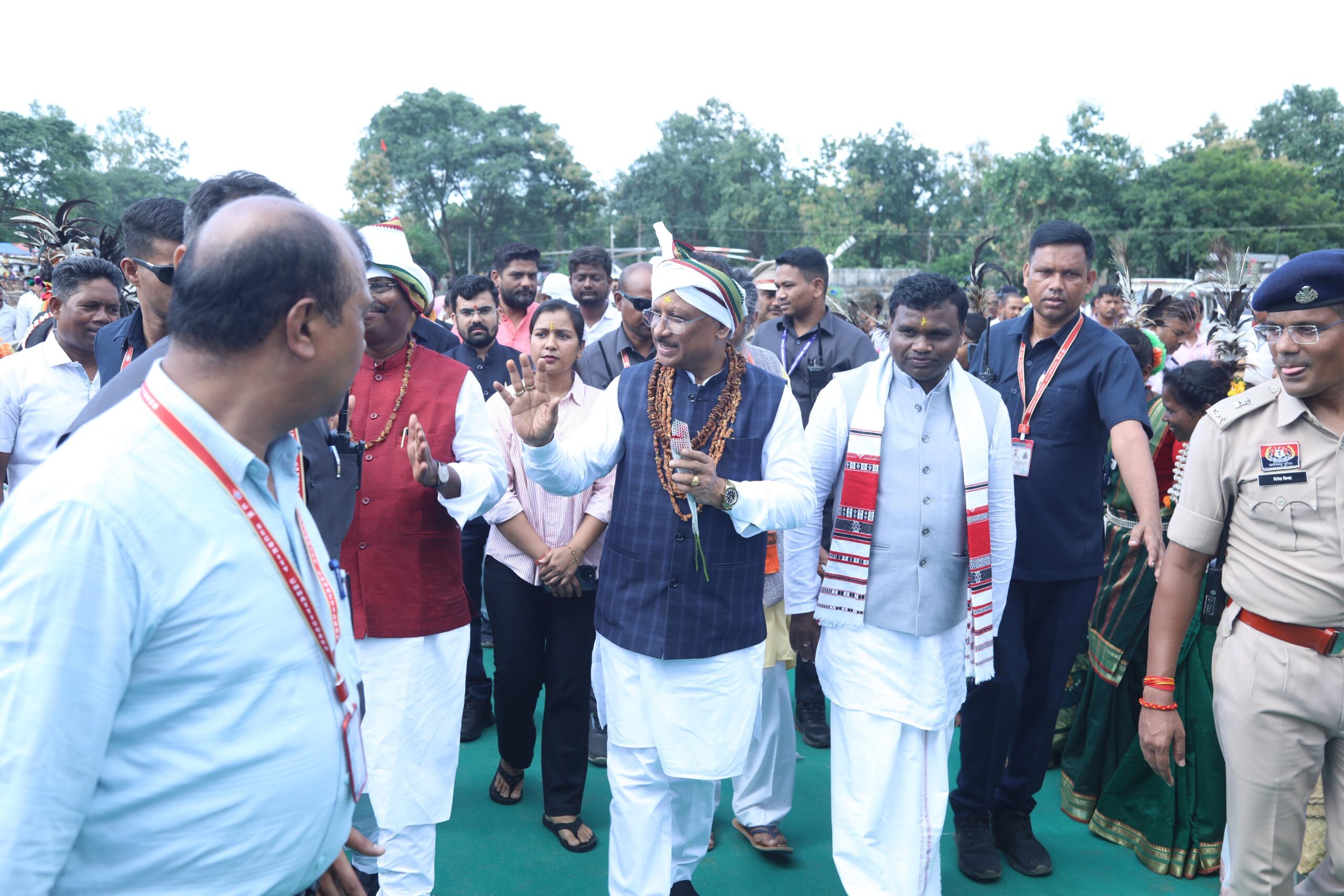 कांकेर – प्रदेश के मुख्यमंत्री श्री विष्णुदेव साय और झारखंड के पूर्व मुख्यमंत्री अर्जुन मुंडा का आज कांकेर जिले के नरहरपुर हेलीपैड पर आगमन, युवा समाज के पदाधिकारियो और स्वायत्त पदाधिकारियों ने आत्मीय स्वागत किया।इस अवसर पर वन मंत्री केदार कश्यप, सांसद कांकेर भोजराज नाग, विधायक कांकेर आशाराम नेताम, पुलिस उप महानिरीक्षक अमित तुकाराम कांबले, कलेक्टर नीलेश कुमार महादेव क्षीरसागर ने पुष्पगुच्छ उद्योगपति मुख्यमंत्री का स्वागत किया। इस अवसर पर जनाब समाज के रिवाज ने पारंपरिक रीति रिवाज के अनुसार मुख्यमंत्री का पारंपरिक पगड़ी पहनावेकर का आत्मिक स्वागत किया।