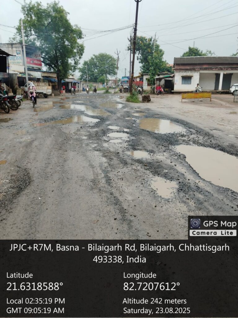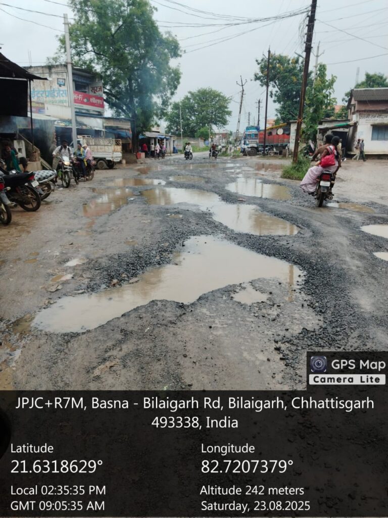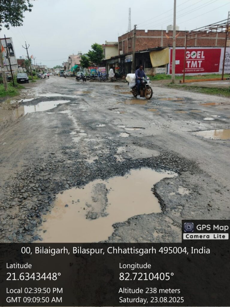 बिलाईगढ़ – नगर की जर्जर सड़कों और अधूरे पड़े गौरव पथ निर्माण को लेकर एक बार फिर बवाल मच गया है। उप जिला नगर पंचायत बिलाईगढ़ का मुख्य मार्ग गड्ढों से भरा पड़ा है, जिसके कारण आए दिन दुर्घटनाएं हो रही हैं। स्कूली बच्चों से लेकर आम नागरिक और व्यापारी तक सड़क की बदहाली से त्रस्त हैं।