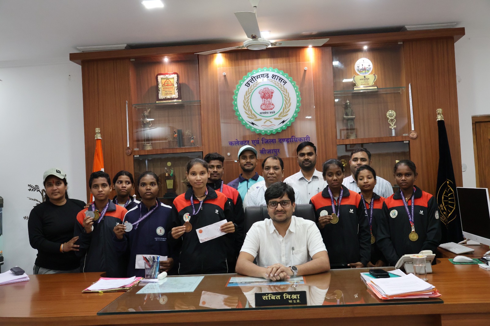 बीजापुर – 22वीं राज्य स्तरीय एथलेटिक्स प्रतियोगिता 2025 जो कि 5 से 7 सितम्बर 2025 तक बहतराई एथलेटिक्स स्टेडियम बिलासपुर में छत्तीसगढ़ एथलेटिक्स संघ के द्वारा आयोजित किया गया। जिसमें बीजापुर खेल अकादमी एथलेटिक्स खेल के 20 खिलाड़ियों ने भाग लिया जिसमें 13 बालिका और 07 बालक शामिल थे। वहीं श्रेष्ठ प्रदर्शन कर 08 गोल्ड मेडल, 02 सिल्वर, 01 ब्राॅज, सहित कुल 11 मेडल अपने नाम किया। जिसमें लक्ष्मण हपका ने ट्राॅयथलाॅन । 60मी. रन, ऊंची कूद, लम्बी कूद में गोल्ड मेडल एवं किड्स जैवलिन में गोल्ड मेडल। नताशा तेलामी ट्रायथलान ठ 60 मी. रन लम्बी कूद, शाॅटपुट बैक थ्रो में गोल्ड मेडल। सविता कुहरामी ट्रायथलाॅन ब् 60मी रन लम्बी कूद, 600मी रन में गोल्ड मेडल। निर्मती तेलम ऊंची कूद में गोल्ड मेडल। संतोषी भण्डारी 60मी रन एवं 600मी रन में गोल्ड मेडल। अंजली कारम पेंन्टाथलाॅन 60मी रन, लंबी कूद 60मी हर्डल, शाॅटपुट, 600 मी. रन में गोल्ड मेडल एवं लंबी कूद में सिल्वर मेडल। भूमिका कुरसम जैवालिन थ्रो में सिल्वर मेडल। पूजा वाचम 1000 मी. रन में ब्राॅंज मेडल हासिल किया। इन सभी खिलाड़ियों में से 5 खिलाड़ियों ने एथलेटिक्स फैडरेशन आॅफ इंडिया के एन्ट्री स्टैडंर्ड को क्वालीफाई किया है और 10 अक्टूबर से 14 अक्टूबर 2025 को कालिंगा स्टेडियम, भुवनेश्वर उड़ीसा में होने वाले 40वीं नेशनल जुनियर एथलेटिक्स चैम्पियनशीप 2025 में छत्तीसगढ़ राज्य का प्रतिनिधित्व करेंगे। ये सभी बीजापुर स्पोट्स अकादमी के एथलेटिक्स खिलाड़ी शासकीय नवीन कन्या हाई स्कूल एवं एकलव्य आदर्श आवासीय विद्यालय के छात्र-छात्राएं है। इस उपलब्धि पर कलेक्टर संबित मिश्रा एवं प्रभारी खेल अधिकारी नारायण प्रसाद गवेल ने सभी खिलाड़ियों को बधाईयां देते हुए उनके उज्जवल भविष्य की कामना की साथ ही सहायक आयुक्त देवेन्द्र सिंह, प्राचार्य एकलव्य अनिल मिश्रा, पीईटी कुमारी अमिता गुर्जर तथा एथलेटिक्स टीम के कोच संदीप कुमार गुप्ता उपस्थित थे।