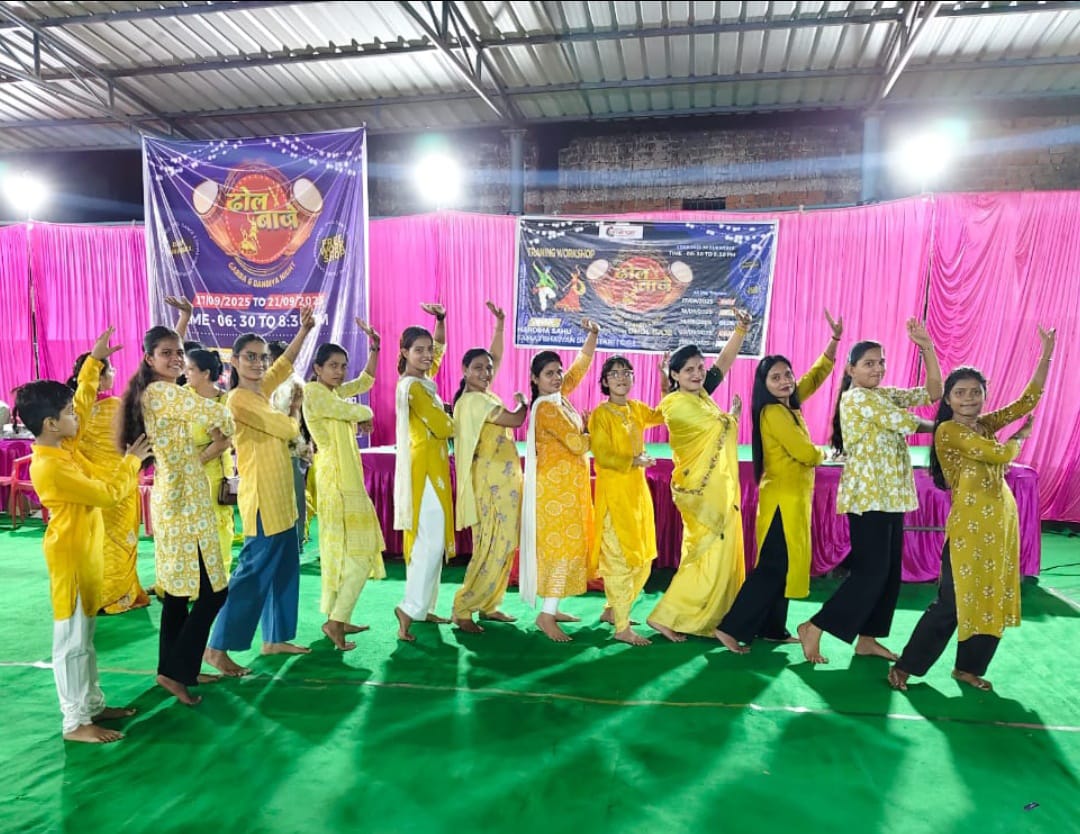 धमतरी – गरबा की सुरम्य थाप और ऊर्जा से भरपूर माहौल के बीच ढोल बाजे गरबा प्रशिक्षण के दूसरे दिन प्रतिभागियों ने पीले रंग के ड्रेस कोड में एक अलग ही झलक प्रस्तुत की। रंग-रूप में एकरूपता ने न केवल आयोजन स्थल की शोभा बढ़ाई बल्कि अनुशासन और सामूहिकता की भावना को भी सजीव कर दिया।शाम 6:30 से 8:30 बजे तक चल रहे इस पाँच दिवसीय प्रशिक्षण कार्यक्रम में दूसरे दिन प्रतिभागियों की संख्या में आशातीत वृद्धि देखने को मिली। कुल 145 प्रशिक्षणार्थियों ने उत्साहपूर्वक भाग लेकर माहौल को जोश से भर दिया।