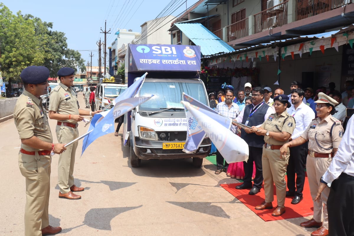 बालोद – आज दिनांक 20/09/2025 को बालोद पुलिस एवं भारतीय स्टेट बैंक शाखा बालोद के सौजन्य से बढ़ते साइबर अपराध की रोकथाम एवं आम नागरिकों को जागरूक करने हेतु “SBI साइबर जागरूकता रथ (ऑडियो विजुअल वेन)” का शुभारंभ किया गया।रथ को अतिरिक्त पुलिस अधीक्षिका श्रीमती मोनिका ठाकुर, डीएसपी मुख्यालय देवांश सिंह राठौर, रक्षित निरीक्षक श्रीमति रेवती वर्मा, क्षेत्रीय प्रबंधक SBI संजय प्रसाद, मुख्य शाखा प्रबंधक SBI बालोद गौरव भटनागर एवं थाना प्रभारी कोतवाली शिशुपाल सिन्हा द्वारा हरी झंडी दिखाकर रवाना किया गया।साइबर जागरूकता रथ की गतिविधियाँ, रथ शहर के प्रमुख स्थानों पर भ्रमण करते हुए नुक्कड़ नाटक एवं ऑडियो-वीजुअल प्रस्तुति के माध्यम से आमजन को साइबर सुरक्षा संबंधी जानकारी प्रदान करेगी।जागरूकता रथ पर साइबर अपराध से बचाव के लिए दिशा-निर्देश दिए जा रहे हैं।