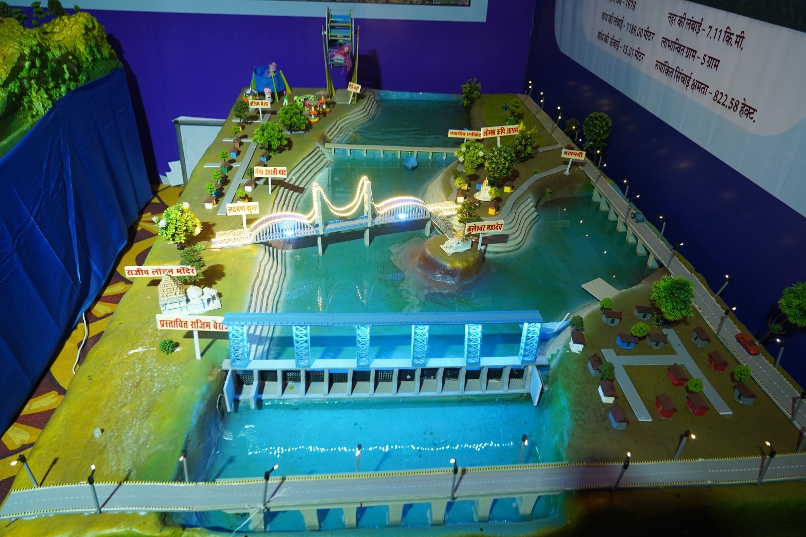स्टॉल में प्रस्तावित राजिम बैराज का मॉडल भी रखा गया है, जिसकी अनुमानित लागत 95 करोड़ रुपये बताई जा रही है। जानकारी के अनुसार इस बैराज की कुल लंबाई लगभग 500 मीटर एवं ऊंचाई 5 मीटर प्रस्तावित है। बैराज के निर्माण से राजिम एवं नवापारा क्षेत्र में जल संकट समाप्त होगा तथा सालभर जलभराव बना रहेगा। इसके साथ ही नौकाविहार, वाटर स्पोर्ट्स और पर्यटन गतिविधियों को भी बढ़ावा मिलेगा।