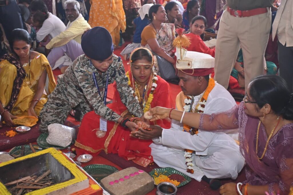 इसमें 4 आत्मसमर्पित नक्सली नवदंपतियाँ भी शामिल है। मुख्यमंत्री कन्या विवाह योजना के तहत विभाग द्वारा 50 हजार रूपये का व्यय किया जाता है। जिसमें 35 हजार रूपये वधु के बैंक खाते में हस्तांतरित कर किया जाता है तथा 7 हजार रूपये के श्रृंगार सामग्री एवं व्यवस्था मद में प्रति जोड़े 8 हजार का खर्च किया जाता है। इस दौरान कलेक्टर श्री बीएस उइके, पुलिस अधीक्षक वेदव्रत सिरमौर, जिला पंचायत के मुख्य कार्यपालन अधिकारी प्रखर चंद्राकर, जिला कार्यक्रम अधिकारी महिला एवं बाल विकास विभाग अशोक पाण्डेय मौजूद थे।