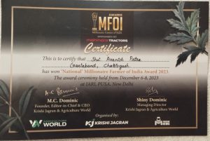 देवभोग :- देवभोग के गहनामुड़ा में अपने 10 एकड़ कृषि भूमि में जैविक व मिश्रित खेती से प्रदेश में नाम कमाने वाले अवनीश पात्र अब कृषि क्षेत्र में बेहतर आमदनी के लिए राष्ट्रीय स्तर का सम्मान मिलेनियर फारमर्स ऑफ इंडिया अवार्ड से पुरुस्कृति किया गया है। महेंद्रा ट्रैक्टर व कृषि जागरण पत्रिका द्वारा सयुक्त रूप से यह आयोजन कृषि विज्ञान क्षेत्र पूसा दिल्ली के मैदान में किया गया है।6 दिसंबर से आयोजित कार्यक्रम का समापन 8 को होगा।केंद्रीय मंत्री नितिन गणकरी व गुजरात के राज्यपाल आचार्य देवब्रत भी आयोजन के मौजूद रहे।