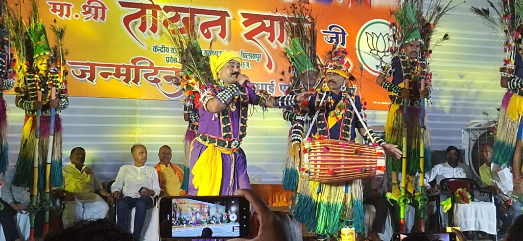बिलासपुर – केंद्रीय राज्य मंत्री तोखन साहू के जन्मदिन के अवसर पर कुंदन पैलेस ग्राउंड में विराट सांस्कृतिक संध्या का आयोजन किया गया जिसमें छत्तीसगढ़ के विश्व प्रसिद्ध गेड़ी लोक नृत्य का प्रदर्शन अनिल गढ़ेवाल के कुशल नेतृत्व में किया गया।