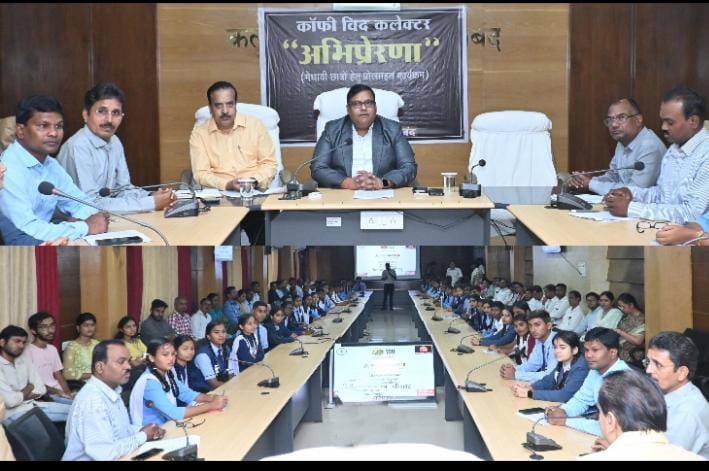 गरियाबंद 25 अक्टूबर 2024/ संयुक्त जिला कार्यालय के कलेक्ट्रेट सभाकक्ष में आज कॉफी विद कलेक्टर कार्यक्रम का आयोजन किया गया। कार्यक्रम में गौरव गरियाबंद अभियान के तहत तिमाही परीक्षा के मेधावी विद्यार्थियों को अभिप्रेरणा कार्यक्रम के तहत बोर्ड परीक्षा में बेहतर परिणाम के लिए प्रेरित किया गया। इस कार्यक्रम में कलेक्टर श्री दीपक अग्रवाल ने कक्षा 10वीं एवं 12वीं के 61 मेधावी बच्चों को बोर्ड परीक्षा में उत्कृष्ट प्रदर्शन के लिए विभिन्न टिप्स एवं मार्गदर्शन प्रदान किये। बच्चों ने कॉफी की चुस्कियां लेते हुए हल्के फुल्के माहौल में सफलता के गुर सीखे। साथ ही अच्छी पढ़ाई के लिए प्रेरित हुए। कलेक्टर ने बच्चों को संबोधित करते हुए कहा कि बेहतर परीक्षा परिणाम के लिए लक्ष्य बनाकर पढ़ाई करे। सही समय-प्रबंधन एवं तय किये गये लक्ष्य के प्रति सच्ची लगन से मेहनत करने से निश्चित ही सफलता मिलती है।