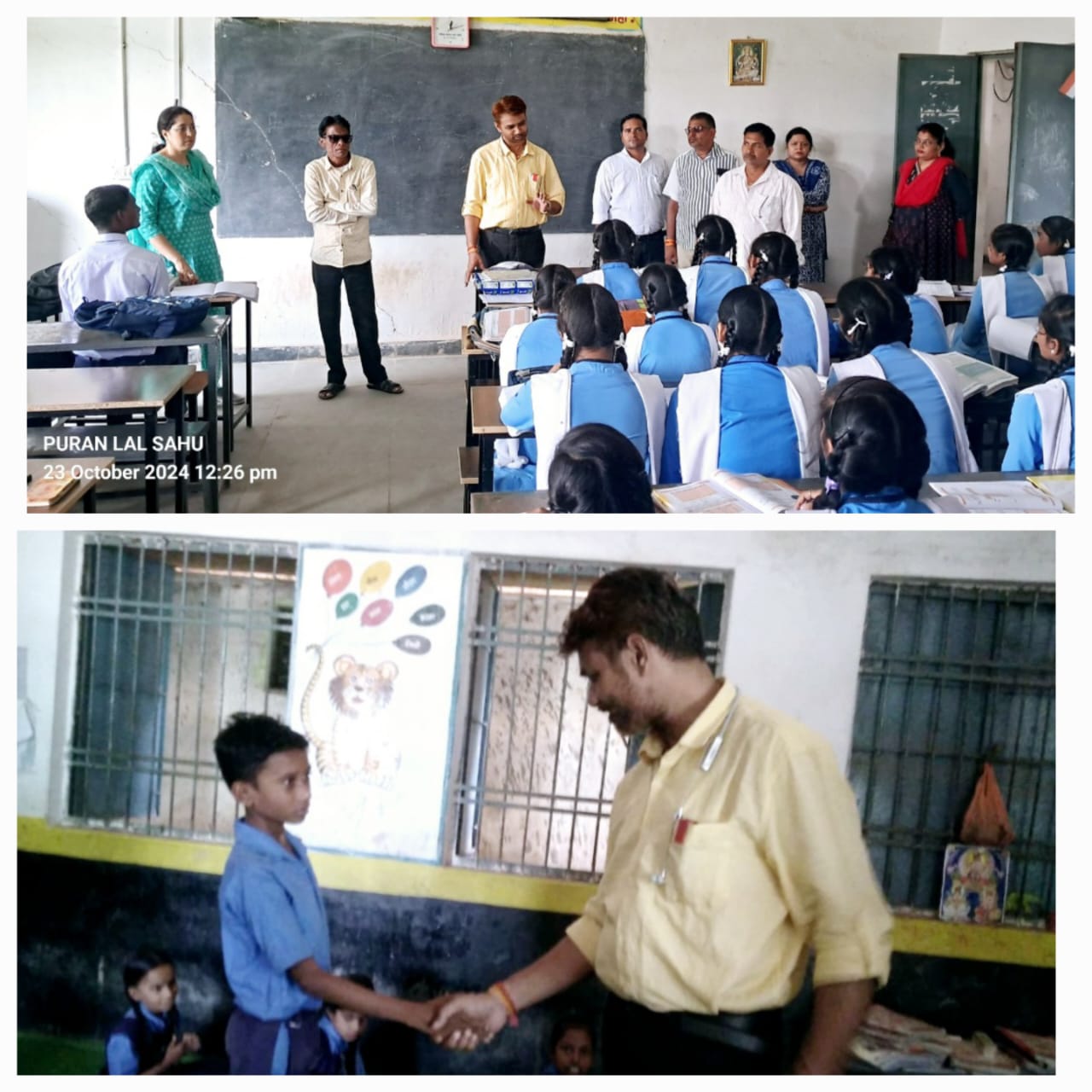 इसके लिए आवश्यक प्रक्रिया जल्द ही पूर्ण कर लेवें. वहीं सभी विद्यार्थी नियमित रूप से शाला में उपस्थित रहें इनके लिए विद्यार्थियों को प्रोत्साहित करते रहें.वही लगातार अनुपस्थित रहने वाले एक विद्यार्थी को कलम देकर उन्हें नियमित रूप से शाला आने हेतु प्रेरित किया.संकुल प्राचार्य पूरन लाल साहू ने बच्चों के शैक्षणिक क्रियाकलापों के संबंध में चर्चा करते हुए कहा कि बच्चों की शैक्षणिक गतिविधियों के अलावा नैतिक, शारीरिक शिक्षा पर विशेष ध्यान देंने हेतु प्रोत्साहित किया गया. ताकि बच्चे भविष्य में आदर्श नागरिक बनकर राष्ट्र निर्माण में अपनी महत्वपूर्ण भूमिका का निर्वहण कर सकें. इस मौके पर संकुल समन्वयक भुवन यदु, नरेश साहू,दशरथ वर्मा, प्राचार्य याचना जोशी, व्याख्याता संतोष ठाकुर, अनिल बर्रे, शिक्षक नंदकुमार यादव, टिकेंद्र यदु एवं शाला के शिक्षक गण उपस्थित थे.
