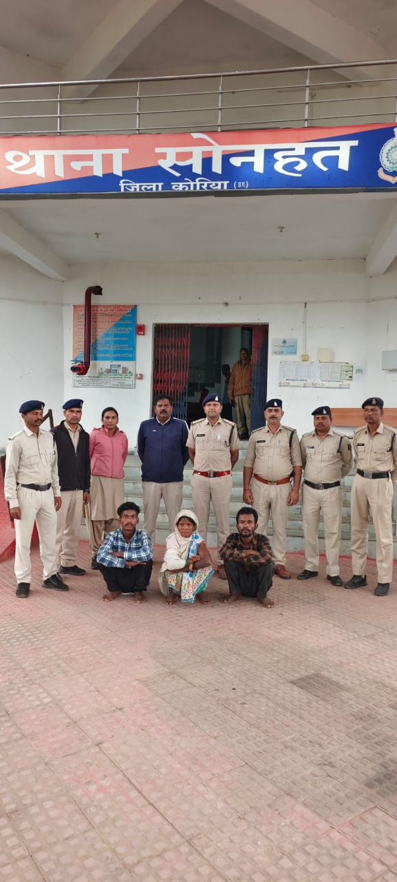 डॉक्टर्स की रिपोर्ट के आधार पर प्रथम दृष्टया मृतिका ललिता पण्डो की मृत्यु किसी अज्ञात आरोपी द्वारा मारकर हत्या करना तथा हत्या पश्चात फांसी पर लटकाने से होना पाते हुए जांच में अज्ञात आरोपी के विरुद्ध अपराध क्र. 171/2024 धारा 103(1) BNS पंजीबद्ध कर विवेचना में लिया गया। उक्त प्रकरण से पुलिस अधीक्षक कोरिया सूरज सिंह परिहार को अवगत कराया गया, एसपी कोरिया द्वारा उक्त प्रकरण में वैधानिक कार्यवाही करते हुए आरोपी को पकड़ने हेतु निर्देशित किया गया था।विवेचना के दौरान पीएम रिपोर्ट एवं गवाह मोहन पण्डो के कथन के आधार पर संदेही लक्ष्मनिया, सोमारसाय एवं सोनसाय तीनो निवासी ग्राम सिंघोर चौकी रामगढ़ से पूछताछ किया गया। आरोपिया लक्ष्मनिया पण्डो से पूछताछ करने पर उसने अपने मेमोरण्डम कथन में बताया कि 23 अक्टूबर को दोपहर खाना बनाने की बात पर मेरा एवं मृतिका ललिता का झगड़ा हुआ था, जिससे मैंने मृतिका का गला पकडकर उसके सर को दिवाल में टकरा दिया था, जिससे मृतिका बेहोश होकर गिर गई और कुछ देर में उसकी मृत्यु होना बतायी, इसके पश्चात अंधेरा होने पर मैंने, सोमार साय व सोन साय के साथ मिलकर मृतिका ललिता के शव को नदी के पास ले जाकर और मृत्यु को फांसी का रूप देने के लिए सरई के पेड़ में फांसी पर लटका दिये थे। आरोपीगणो के विरुद्ध भली भांति अपराध सबूत पाये जाने से आरोपीगण लक्ष्मनिया पंडो पति सोमार साय उम्र 42 वर्ष, सोमारसाय पण्डो पिता लालसाय पण्डो उम्र 43 वर्ष एवं सोनसाय पण्डो पिता सोमारसाय पण्डो उम्र 24 वर्ष निवासी ग्राम सिघोर चौकी रामगढ़ थाना सोनहत जिला कोरिया छ.ग. को 27 अक्टूबर 2024 को गिरफ्तार कर न्यायिक रिमाण्ड पर भेजा गया है।