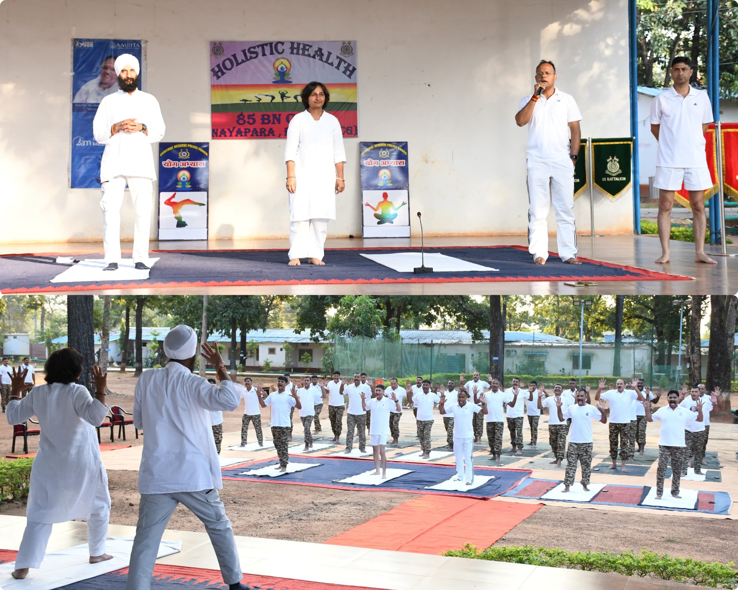 बीजापुर – 85 बटालियन सीआरपीएफ नयापारा बीजापुर के प्रांगण मे बल के जवानों को तनाव से मुक्त करने के लिए हॉलिस्टीक इंटेग्रेटेड अर्मिता मेडिटेशिन केरला के द्वारा तनाव प्रवंधन (स्ट्रेस मैनेजमेंट) कार्यक्रम का आयोजन किया गया। कार्यक्रम हॉलिस्टीक इंटेग्रेटेड अर्मिता मेडिटेशिन केरला की तरफ से आये प्राध्यापक नरेन्द्र आनन्द और श्रीमती स्वेता द्वारा तनाव प्रवंधन का कार्यक्रम किया गया।