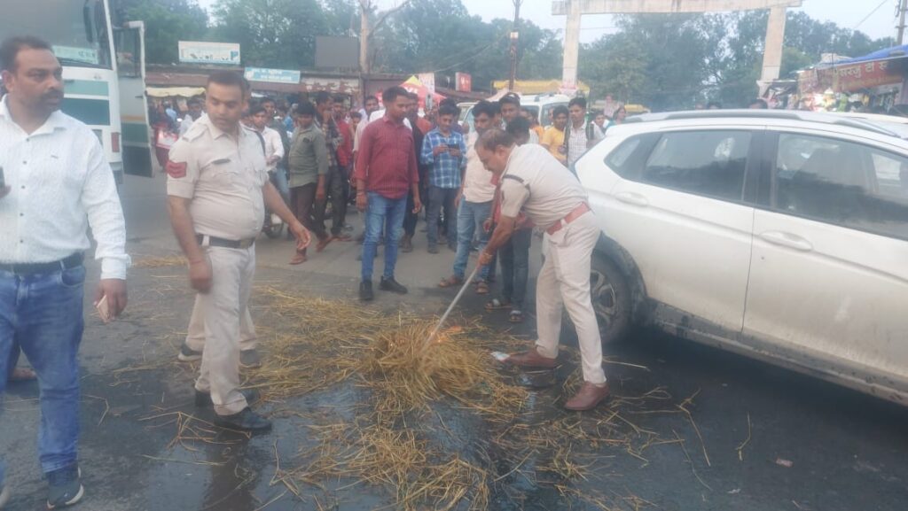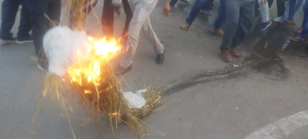 जो सरकार के कानून व्यवस्था को बेलगाम और विसफलता की श्रेणी में छत्तीसगढ़ की जनता मान रही है और यही कारण है कि पुलिस वालों पर महिलाएं एवं ग्रामीणों का आक्रोश देखने को मिल रहा है पुलिस को आंसू गैस के गोले के साथ बल प्रयोग करना पड़ रहा है इन सबको देखते हुए प्रदेश सरकार के गृहमंत्री विजय शर्मा को नैतिकता के आधार पर इस्तीफा सौंप देना चाहिए, जिसको लेकर कांग्रेसियों के द्वारा वाड्रफनगर के राजीव गांधी चौक पर गृहमंत्री व मुख्यमंत्री का पुतला दहन किया गया वहीं इस पुतला दहन के दौरान पुलिस -प्रशासन मुस्तैद नजर आए वाड्रफनगर तहसीलदार मोइनुद्दीन के उपस्थिति में पुतले को बूझकर जप्त कराया गया इस दौरान वाड्रफनगर चौकी प्रभारी डाकेश्वर सिंह के साथ एएसआई पुष्पराज सिंह , एएसआई महेंद्र दुबे ,आरक्षक संजीव सिंह, शिव कुमार पटेल, अशोक तिर्की,के साथ अन्य पुलिस स्टाफ शामिल रहे ,वहीं कांग्रेस पदाधिकारी में देवनारायण मरावी, अश्वनी यादव, शिव शंकर यादव, नंदलाल श्यामले, अमित यादव, संजीव यादव, अनिल कुशवाहा, सुमंत गुप्ता , संतु मिश्रा, मनीष अब्दुल्ला, चंद्रशेखर यादव, राजेंद्र कुशवाहा विद्याचरण टेकाम, अजीत सिंह विकास भारती, आशीष यादव के साथ-साथ कांग्रेस पार्टी के कार्यकर्ता उपस्थित रहे ।