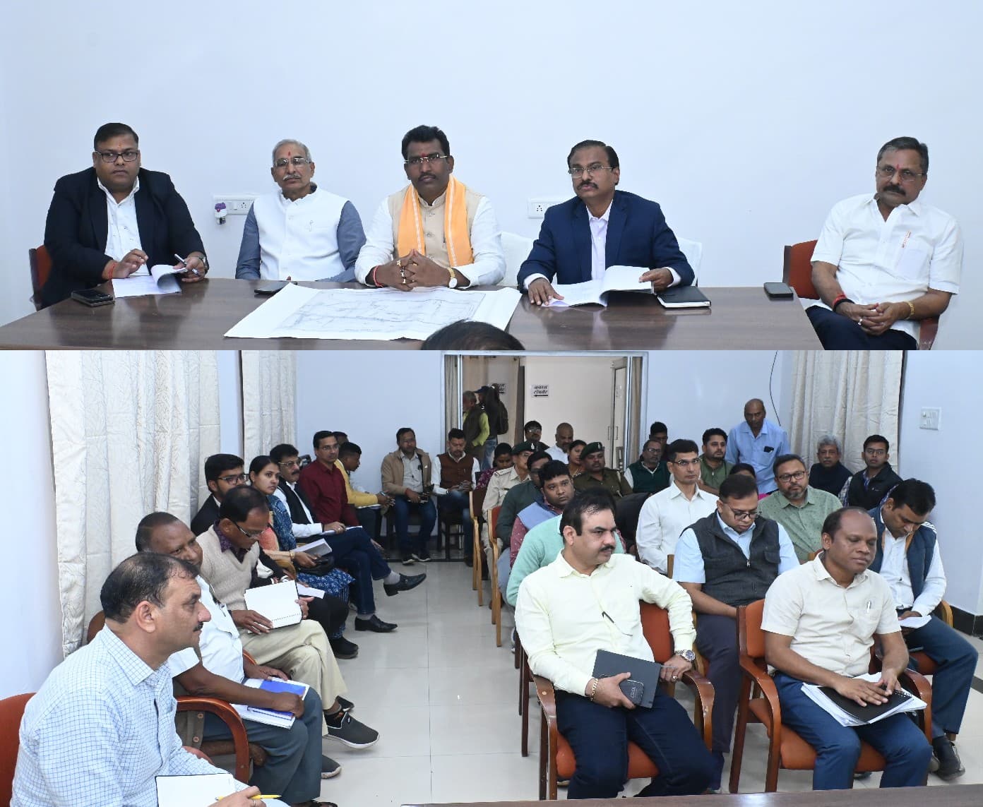 विधायक श्री साहू सहित संभागायुक्त एवं कलेक्टर की मौजूदगी में अधिकारियों की हुई बैठक ।