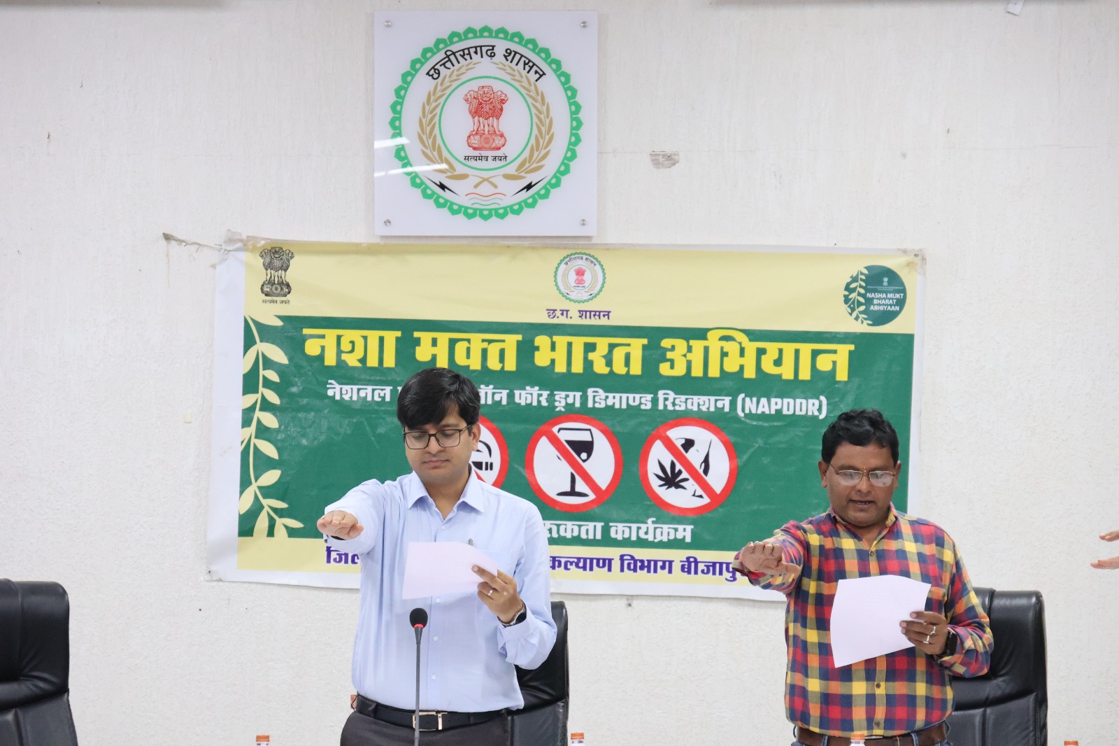 बीजापुर – नशा मुक्त भारत अभियान अंतर्गत जिला स्तरीय समिति का बैठक कलेक्टर संबित मिश्रा के अध्यक्षता में सम्पन्न हुई । सभी सदस्यों एवं संबंधित विभागों के अधिकारियों को नशामुक्त भारत अभियान के क्षेत्र में व्यापक प्रचार -प्रसार करने हेतु निर्देशित किया गया। स्कूल शिक्षा विभाग एवं आदिम जाति कल्याण विभाग एवं उच्च शिक्षा विभाग को समय-समय पर नशा उन्मूलन के क्षेत्र में रैली , प्रतियोगिता , नुक्क्ड़-नाटक इत्यादि करने एवं जिले को नशामुक्त बनाने 15 सीटर नशामुक्त केन्द्र की स्थापना की गई है। नशे के चपेट में आए लोगों को उक्त पुनर्वास केन्द्र में जाकर समाज के मुख्यधारा में जुडने के लिए प्रेरित करने को कहा गया । उपस्थित अधिकारियों को कलेक्टर ने नशामुक्त भारत अभियान के तहत नशा नहीं करने एवं समाज को नशामुक्त करने का शपथ दिलाई।