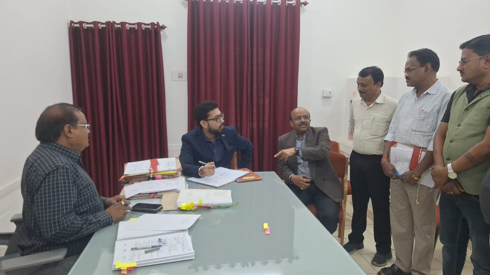 महासमुन्द – कलेक्टर विनय कुमार लंगेह ने आज सुबह ठीक 10 बजे कृषि विभाग़ पहुंचकर कार्यालय का औचक निरीक्षण किया। कलेक्टर ने उपस्थिति पंजी मंगाकर खुद कर्मचारियों की हाजिरी ली और अनुपस्थित कर्मचारी योगेन्द्र वर्मा को नोटिस देने के निर्देश दिए। इस दौरान कृषि उपसंचालक एफ आर कश्यप और अन्य कर्मचारी मौजूद थे। कृषि उपसंचालक ने बताया कि निर्देशानुसार सभी अधिकारी कर्मचारी को समय पर कार्यालय आने के निर्देश दिए गए है जिसका पालन किया जा रहा है। निरीक्षण के दौरान जिला पंचायत सीईओ श्री एस. आलोक भी मौजूद थे।तत्पश्चात कलेक्टर श्री लंगेह ने लोक निर्माण विभाग का औचक निरीक्षण किया। इस दौरान कार्यालयों में उपस्थिति, कार्यप्रणाली और जनसेवा से जुड़े कार्यों का जायजा लिया। निरीक्षण के दौरान यहां कार्यालयीन समय में 6 कर्मचारी समय पर अपनी ड्यूटी से अनुपस्थित पाए गए, जिनमें लोचन दास, पोषण ध्रुव, अंजली सोनवानी, अमित कुर्रे और ज्ञानेश ठाकुर, हेमलाल कोसरे शामिल है। कलेक्टर ने दैनिक उपस्थिति पंजी लेकर स्वयं हाजिरी ली अनुपस्थित कर्मचारियों को नोटिस देने और एक दिन का वेतन काटने के निर्देश कार्यपालन अभियंता श्री चंद्राकर को दिए हैं। उन्होंने सभी कर्मचारियों को दैनिक उपस्थिति पंजी में आते ही हस्ताक्षर करने के निर्देश दिए हैं। उन्होंने कहा कि शासन की मंशानुरूप समय पर कार्यालय पर पहुंचे और जनता को आवश्यक सेवाएं सुलभता से प्रदान करें। उन्होंने कहा कि सरकारी कार्यों में लापरवाही बर्दाश्त नहीं की जाएगी और आवश्यकतानुसार अनुशासनात्मक कार्यवाही भी की जाएगी। उल्लेखनीय है कि एक सप्ताह पूर्व भी कलेक्टर द्वारा एनआईसी, अपर कलेक्टर, चिप्स, निर्वाचन शाखा, स्थापना शाखा, कोषालय, खाद्य, भू-अधीक्षक, आदिवासी, आबकारी, खनिज सहित कलेक्ट्रेट के सभी शाखाओं का निरीक्षण कर उपस्थिति पंजी का अवलोकन किया गया था। जिसमें अनेक अधिकारी कर्मचारी को नोटिस दिया गया था।