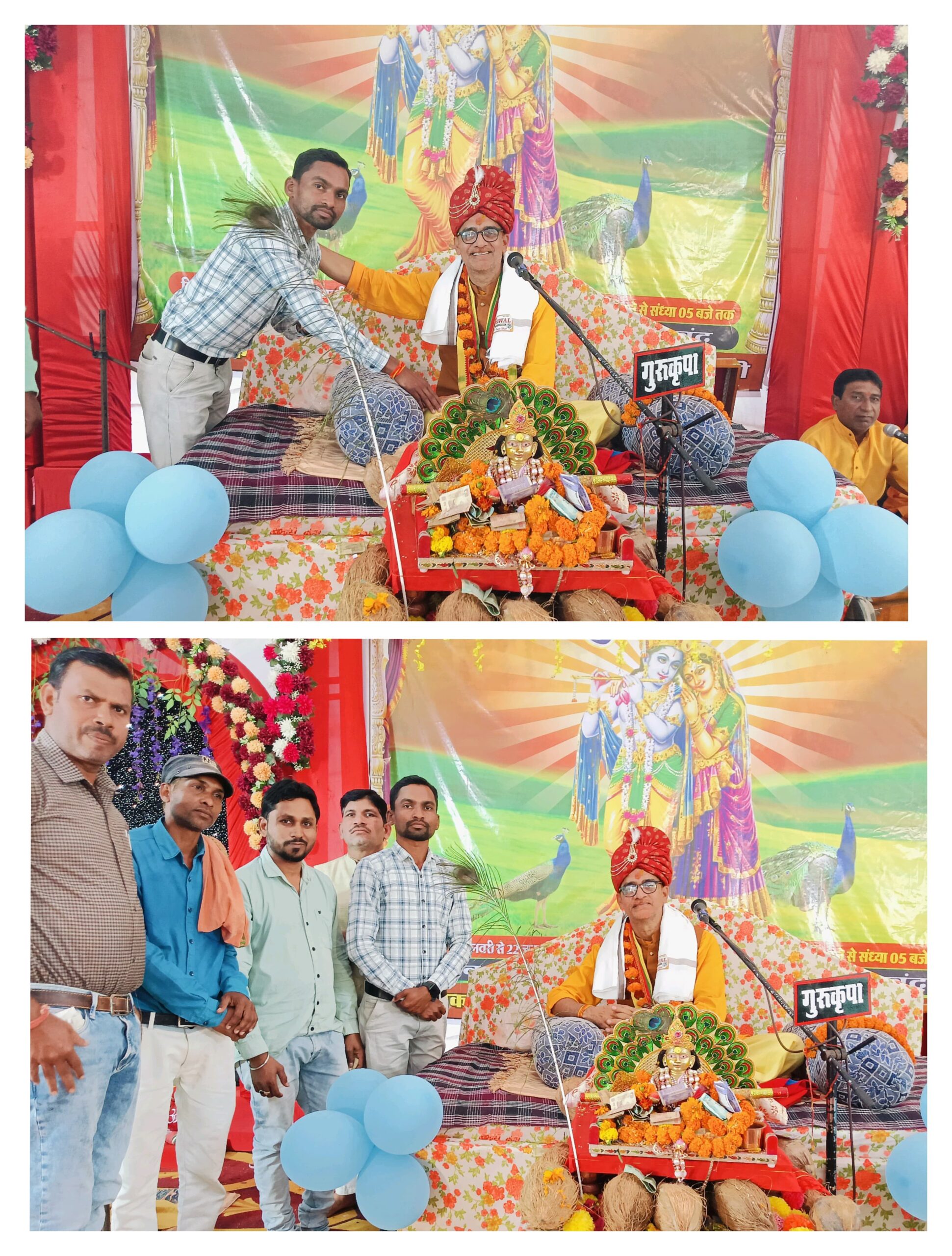 छुरा – ग्राम पिपराही में पटेल परिवार के सानिध्य में नौ दिवसीय श्रीमद् भागवत कथा ज्ञान यज्ञ सप्ताह का आयोजन किया गया है।प्रवचन कर्ता पंडित श्री ऋषिकेश तिवारी ने कथा के छटवा दिन बाल लीला,गोवर्धन पूजा,रुखमणी विवाह का रसपान भक्तों को कराया।कथा में छ.ग.सर्व आदिवासी समाज जिला गरियाबंद मीडिया प्रभारी एवं सामाजिक कार्यकर्ता पुनिराम ठाकुर,समाजसेवी मनोज पटेल जिला पंचायत सदस्य केशरी ध्रुव,सरपंच संघ अध्यक्ष लेखराज ध्रुरवा,उमेन्द्र सोरी नारायण पटेल प्रमुख रुप से शामिल हुए।और राधा कृष्ण के प्रतिमा का पूजा-अर्चना कर क्षेत्र के लिए खुशहाली की कामना की साथ ही कथा व्यास पर विराजमान पंडित ऋषिकेश तिवारी जी का शाल एवं श्रीफल भेंटकर आशीर्वाद प्राप्त किया।कार्यक्रम को सफल बनाना में जीवन लाल पटेल,लक्ष्मी नारायण पटेल, देवला पटेल,देवनाराण पटेल,प्रीति पटेल,नारायण पटेल,प्रेमवती पटेलएवं समस्त पटेल परिवार पिपराही भागवत कथा का छटवां दिन में ग्रामीण श्रद्धालुओं सहित आप पास ग्रामीण जन बड़ी संख्या में कथा श्रवण करने पहुंचे रहे।