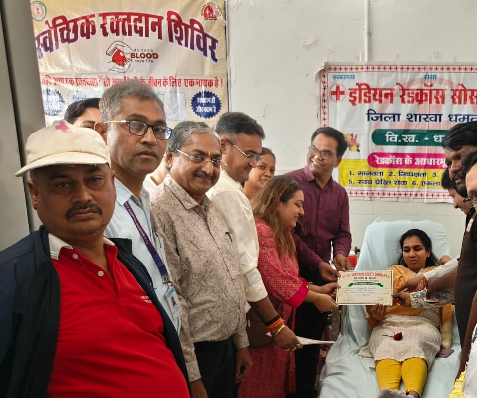 धमतरी – छत्तीसगढ़ केमिस्ट एन्ड डिस्ट्रीब्यूटर एसोसिएशन, जिला औषधि विक्रेता संघ द्वारा जिला अस्पताल धमतरी में स्वैच्छिक रक्तदान शिविर का आयोजन किया गया। इस अवसर पर कलेक्टर सुश्री नम्रता गांधी सहित बड़ी संख्या में लोगों ने रक्तदान किया। कलेक्टर ने कहा कि जीवन में जैसे हम पुण्य के अन्य कार्य करते हैं, वैसे ही रक्तदान भी एक पुण्य का काम है। उन्होंने कहा कि हमें या किसी और को कब, कहां और कैसे रक्त की आवश्यकता पड़ जाती है, इसका किसी को पता नहीं होता। हम जो रक्तदान करते हैं, वह कहीं ना कहीं हमारे या हमारे किसी रिश्तेदार, परिवार अथवा जरूरतमंद के उपयोग में आता है। कलेक्टर सुश्री गांधी ने जिलेवासियों से अपील की है कि रक्त की कमी को पूरा करने के लिये लोगों को ज्यादा से ज्यादा रक्तदान करना चाहिए। उन्होंने कहा कि यदि शरीर स्वस्थ है और रक्तदान करने में सक्षम हैं, तो तीन माह में अवश्य रक्तदान करें। इस अवसर पर मुख्य चिकित्सा एवं स्वास्थ्य अधिकारी डॉ यू एल कौशिक, सिविल सर्जन डॉ ए के टोंडर, जिला कार्यक्रम प्रबंधक डॉ प्रिया कंवर सहित जिला अस्पताल का अमला और रक्तदाता उपस्थित रहे।