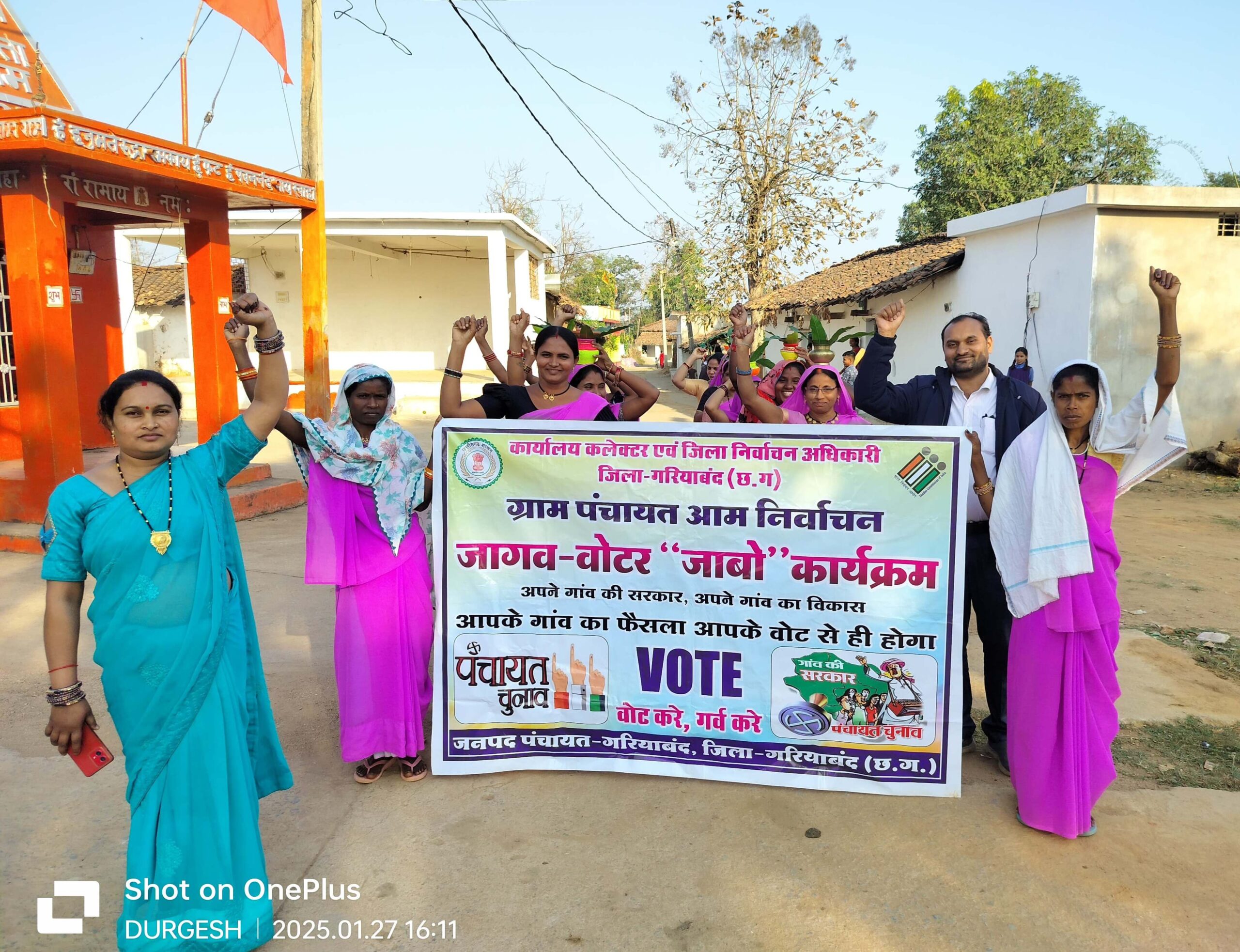 गरियाबंद – नगरीय निकाय एवं त्रि स्तरीय पंचायत निर्वाचन के अंतर्गत लोगों को मतदान के प्रति जागरूक करने विभिन्न जागरूकता कार्यक्रम चलाया जा रहा है। इसी के तहत जनपद पंचायत मैनपुर के गांव में मतदाता जागरूकता कार्यक्रम का आयोजन किया गया। कार्यक्रम में ग्रामीणों एवं समूह की महिलाओं ने मतदाताओं को जागरूक करने कलश यात्रा निकाली। महिलाओं ने जागरूकता रैली निकालकर लोगों से मतदान करने की अपील की। साथ ही ग्रामीणों को अपने मताधिकार का उपयोग करने शपथ दिलाया। इसके अलावा महिलाओं ने रंगोली बनाकर भी मतदान करने का संदेश दिया। इस दौरान लोगों को लोकतंत्र को मजबूत करने के लिए निष्पक्ष मतदान करने के लिए जागरुक किया गया।