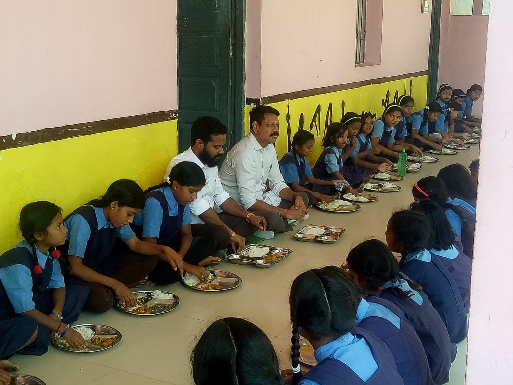 बच्चों के साथ बैठकर मध्याह्न भोजन ग्रहण किया।