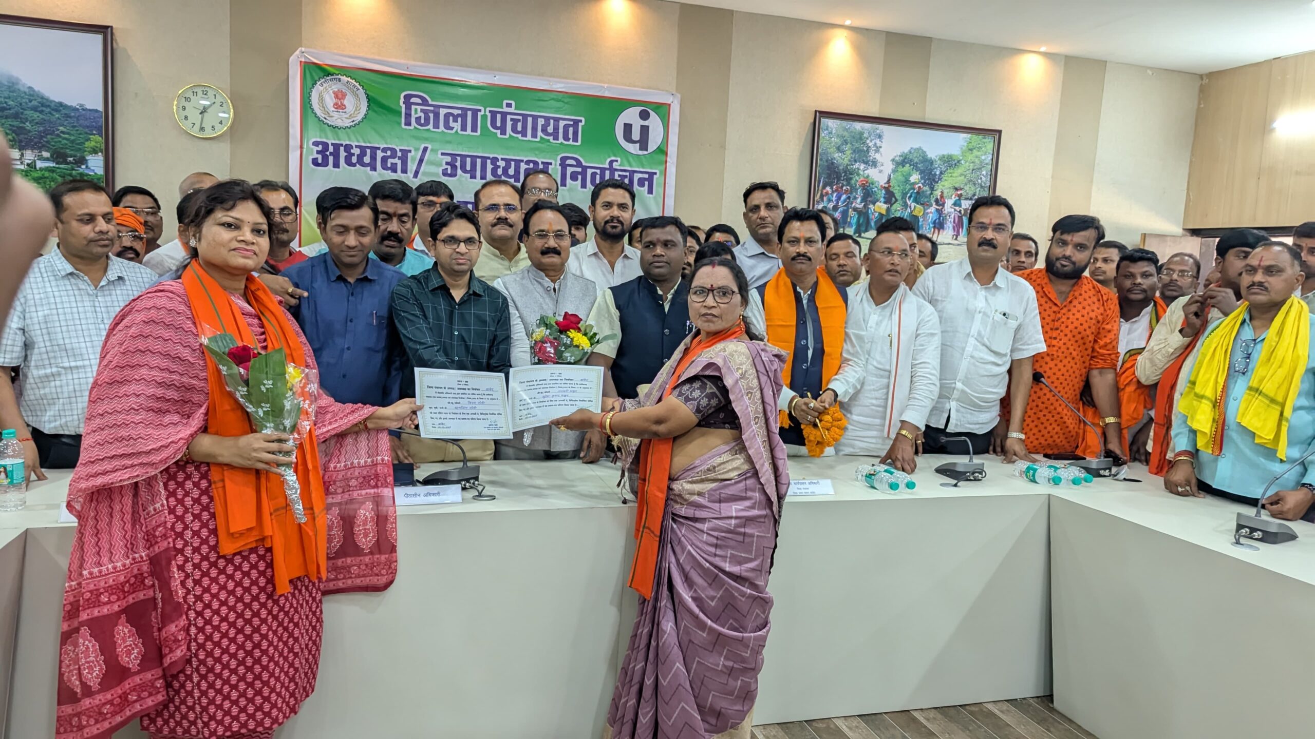जिला पंचायत के सम्मिलन में नवनिर्वाचित अध्यक्ष व उपाध्यक्ष को प्रमाण-पत्र सौंपे गए।