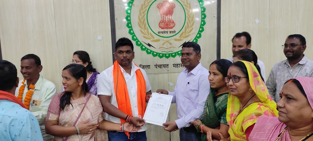 महासमुंद – त्रि-स्तरीय पंचायत निर्वाचन में निर्वाचित होने के उपरांत गुरुवार को जिला पंचायत के सभाकक्ष में जिला पंचायत अध्यक्ष और उपाध्यक्ष पद के निर्वाचन की प्रक्रिया किया गया। दोनों पदों के लिए नाम निर्देशन पत्र भरा गया। नामांकन दाखिल होने के उपरांत निर्धारित समय पर 15 सदस्यों द्वारा मतदान किया गया। जिसमें अध्यक्ष पद हेतु निर्वाचन क्षेत्र क्रमांक 15 से श्रीमती मांगरा किशन लाल पटेल तथा उपाध्यक्ष पद हेतु श्री भीखम सिंह ठाकुर निवार्चन क्षेत्र क्रमांक 6 निर्वाचित हुए। मतदान उपरांत परिणाम की घोषणा की गई और पीठासीन अधिकारी श्री रविराज ठाकुर द्वारा नवनिर्वाचित अध्यक्ष एवं उपाध्यक्ष को निर्वाचन प्रमाण पत्र प्रदान किया गया। इस अवसर पर निर्वाचित जिला पंचायत सदस्य गण, सहायक पीठासीन अधिकारी श्रीमती सृष्टि चंद्राकर सहित निर्वाचन से जुडे़ अधिकारी उपस्थित थे।