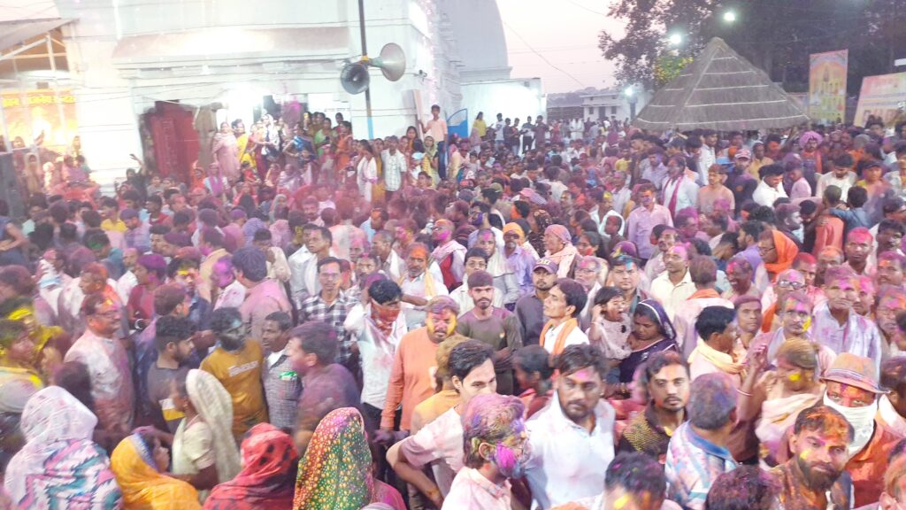 राजिम :– छत्तीसगढ़ के प्रयाग नगरी राजिम में भगवान राजीवलोचन के साथ होली खेलने के लिए प्रदेश भर से लोग पहुंचे हुए थे और एक दूसरे से गुलाल लगाकर होली की बधाई देते रहे। शाम को 6:00 भगवान राजीवलोचन गर्भगृह से होकर जगमोहन, महामंडप और दरवाजा से निकलकर सिढ़ी से होते हुए जैसे ही आम भक्तों के बीच में पहुंचे उसके बाद तो गुलाल की बौछार देखते ही बन रही थी। हर तरफ गुलाल की सतरंगी छटा बिखर रही थी। इनमें से सबसे ज्यादा लाल रंग कब्जा जमाया हुआ था।