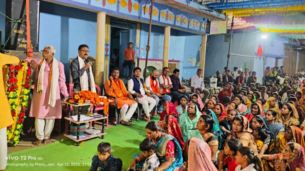 जिसमें महतारी वंदन योजना ऐसे और भी अनेक योजनाएं संचालित हो रही है मैं यहां किसी नेता बनकर नही आपके बेटा बनकर आया हूं आपकी जो मांग है उसे पूरा करना ही हमारी सरकार की पहली प्राथमिकता है।इस अवसर पर बड़ी संख्या में भाजपा कार्यकर्ता प्रमुख रूप से जगदीश यादव पूर्व नगर पंचायत अध्यक्ष एवं पार्षद ने कहा आज हमारे वार्ड में दूर-दूर से रामायण मंडली आकर हम सभी को भक्ति एवं अध्यात्म के रंग में सराबोर कर रहे हैं आज श्रीराम भक्त हनुमान जी के जन्मोत्सव भी है आज गांव गांव में श्रीराम कथा आयोजन किया रहा है ऐसे आयोजनों से गांव में सुख-शांति की बढ़ोतरी होती हैं।आज पूरे विश्व में भगवान श्री राम को मर्यादा पुरुषोत्तम के रूप में जाना जाता हैं जो अपना पूरा जीवन माता पिता एवं समाज के बीच रहकर उनके आदर्शों को अपनाया प्रजा हित को ध्यान रखकर काम इस कारण मर्यादा पुरुषोत्तम कहलाए श्रीराम चरित मानस में ऐसे बहुत से उदाहरण देखने को मिल जाएगा।इस अवसर पर राजू साहू, मनीष हरित,हरीश साहू सरपंच संघ अध्यक्ष फिंगेश्वर के अलावा बड़ी संख्या में भाजपा कार्यकर्ता,वार्डवासी उपस्थित थे।