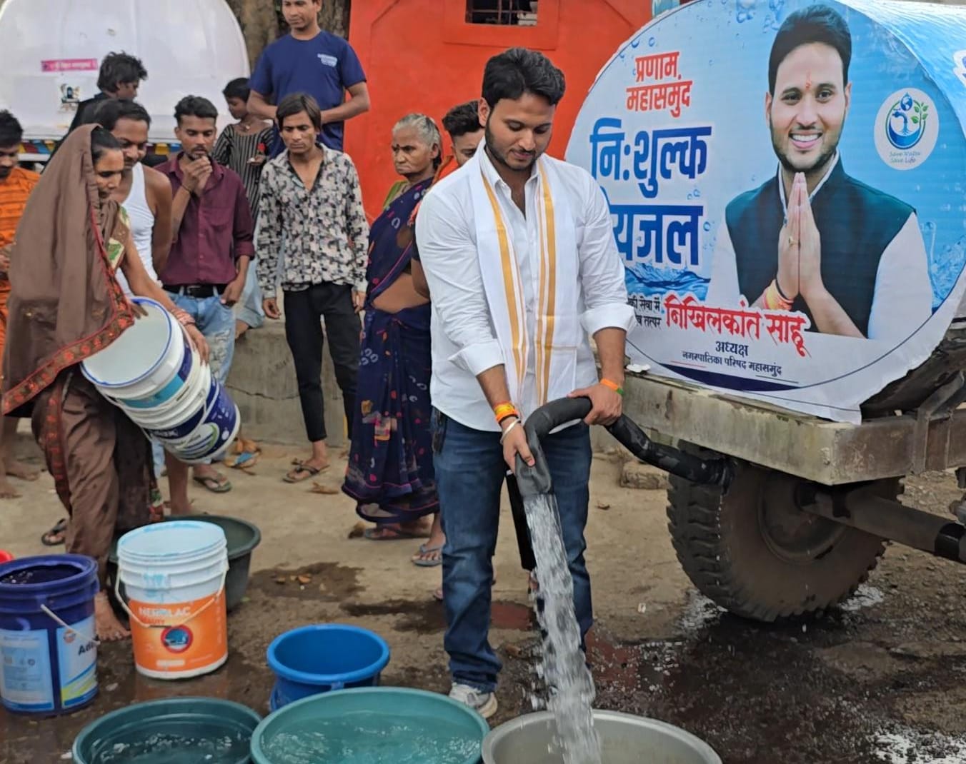 महासमुंद – प्रतिवर्ष की भांति इस वर्ष भी नगर पालिका अध्यक्ष निखिलकांत साहू द्वारा नगर वासियों को जलापूर्ति के लिए निःशुल्क पानी टैंकर का शुभारंभ आज गुड़रुपारा के लोगों को जल वितरण कर किया गया। उल्लेखनीय है कि श्री साहू द्वारा 6 साल पूर्व 2018 से इस निःशुल्क पानी टैंकर का शुभारंभ किया गया था। तब से प्रतिवर्ष ग्रीष्म काल में नागरिकों को जलापूर्ति के लिए यह टैंकर उनके द्वारा शहर भर में चलाई जाती है। पूर्व के वर्षों में अनेक बार लोगों ने श्री साहू को स्वयं पानी टैंकर चलाकर जल वितरण करते देखा। इस वर्ष टैंकर का शुभारंभ करते उन्होंने कहा कि नगर वासियों को पानी की कमी न हो इसके लिए वे निःशुल्क टैंकर चलाकर जल वितरण करते हैं। पालिका द्वारा तीन समय पानी दिया जा रहा है। कहीं कहीं टुल्लू पंप लगाने की शिकायतें मिलती है, जिससे अन्य घरों तक पानी नहीं पहुंच पाता। उन्होंने नगर जनों से निवेदन किया कि पालिका द्वारा भरपूर पानी दिया जा रहा है, उसके अतिरिक्त टैंकर के माध्यम से भी पानी वार्डों तक पहुंचाया जा रहा है। अब निःशुल्क टैंकर भी शुरू हो चुकी है। अतः टुल्लू पंप लगाकर दूसरों को परेशानी में न डाले। ज्ञात हो यह निःशुल्क जल वितरण कार्य नपाध्यक्ष अपने निजी खर्च पर करते हैं। आज टैंकर के शुभारंभ अवसर पर बड़ी संख्या में वार्डवासी उपस्थित थे।