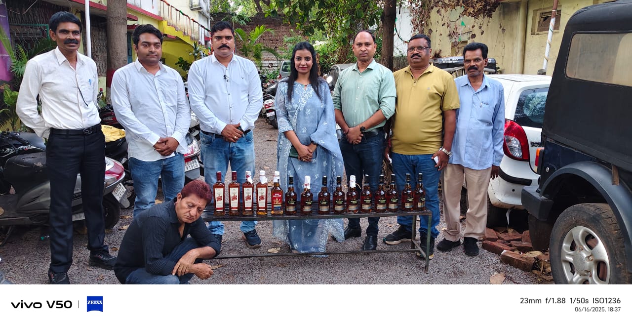 रायपुर – आबकारी आयुक्त सह प्रबंध संचालक (सी. एस.एम.सी.एल .) श्री श्याम धावडे, कलेक्टर रायपुर डॉ गौरव कुमार सिंह के निर्देश पर आबकारी विभाग जिला रायपुर द्वारा अन्य प्रान्त के अवैध मदिरा के विरुद्ध कार्यवाहियां जारी हैं। 16 जून को मुखबिर की सूचना पर हांडीपारा रायपुर में एक किराना दुकान में रायपुर के आबकारी टीम के द्वारा छापेमारी कार्यवाही की गई। मौके पर आरोपी कन्हैया लाल लूलिया के आधिपत्य के किराना दुकान से मध्यप्रदेश प्रान्त की 10 नग ब्लेंडर प्राइड व्हिस्की, 4 नग रॉयल स्टैग व्हिस्की तथा 01 नग रॉयल चौलेंज व्हिस्की कुल 15 नग बोतल अवैध मदिरा मात्रा 11.25 बल्क लीटर जब्त की गई। इस आरोपी के विरुद्ध छत्तीसगढ़ आबकारी अधिनियम की धारा 34(2), 36, 59(क ) के तहत आरोपी को गिरफ्तार कर प्रकरण पंजीबद्ध कर मामला विवेचना में लिया गया है।