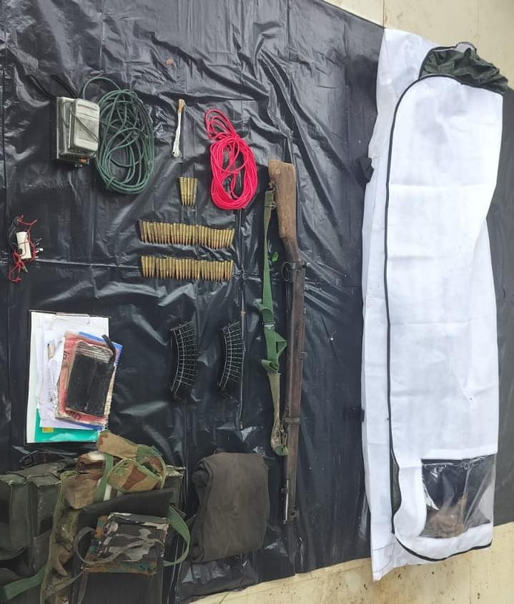 मुठभेड़ स्थल से एक .303 रायफल, भारी मात्रा में विस्फोटक सामग्री एवं नक्सल संबंधी अन्य सामान भी बरामद किए गए।