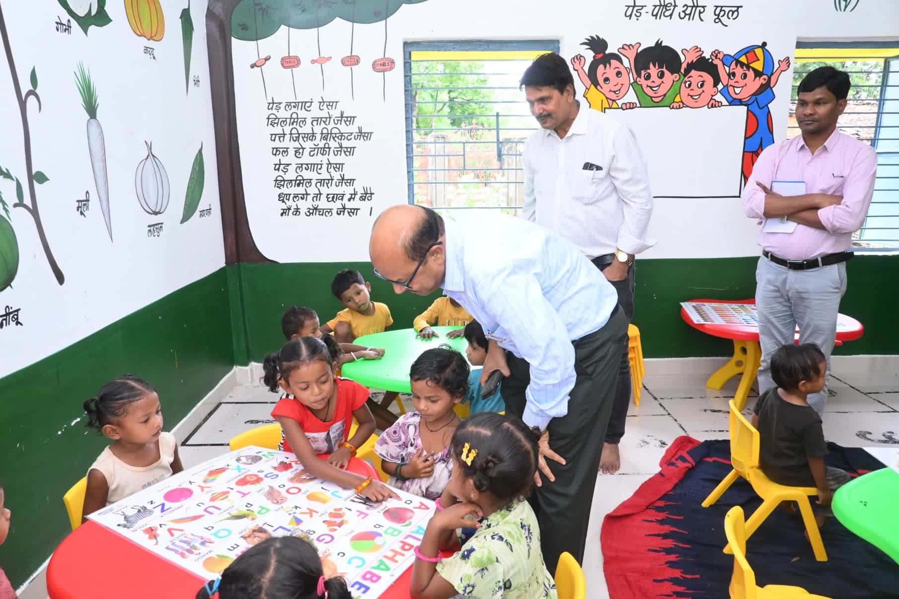 आंगनबाड़ी केन्द्र के बच्चों के वजन एवं ऊँचाई की जाँच कराकर कुपोषण मुक्ति हेतु किए जा रहे उपायों का जायजा लिया.