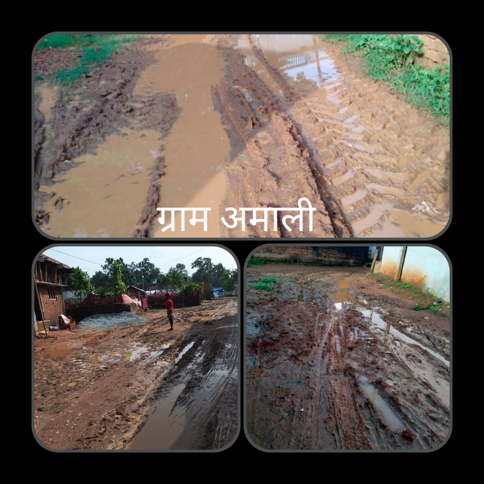 प्रतिवर्ष ग्राम अमाली की गलियां एवं सड़कें वर्षा ऋतु में कीचड़ से लथपथ हो जाती है इसके बाद भी ग्राम पंचायत द्वारा सड़कों की स्थिति सुधारने के लिए कार्य नहीं किए जाते है. जिसकी वजह से ग्रामीणों में आक्रोश है.कमारपारा, तिलेश्वर किराना दुकान वाली सड़क, तुकेश यादव वाली गली, उपसरपंच के घर के सामने डायमंड चौक, गौरी गौरा चौक, नालीपारा और दूसरे अन्य गालियां भी कीचड़ से लथ पथ है, जिसकी वजह से ग्रामीणों का घर से निकलना दूभर हो गया है, दो पहिया वाहन प्रतिदिन कीचड़ की वजह से दुर्घटना के शिकार हो रहे हैं.