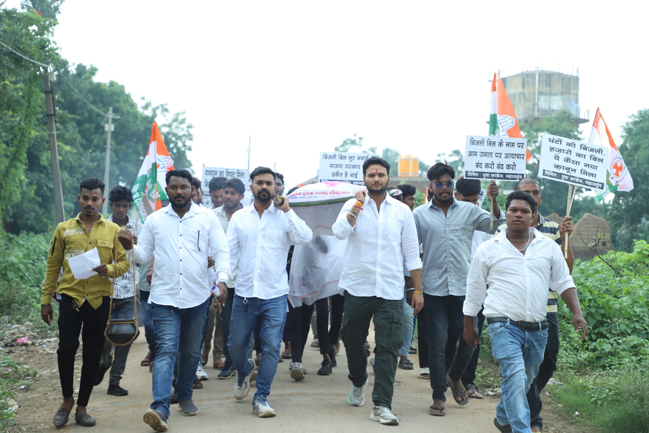 महासमुंद – बिजली दरों में लगातार हो रही वृद्धि से नाराज होकर आज ग्राम पटेवा में युवा कांग्रेस और स्थानीय ग्रामीणों ने मिलकर अनोखे तरीके से विरोध दर्ज कराया। नगर पालिका अध्यक्ष निखिलकांत साहू की मौजूदगी और विधानसभा युवा कांग्रेस अध्यक्ष सौरभ लोधी के नेतृत्व में बिजली बिलों की प्रतीकात्मक शवयात्रा निकाली गई, जिसके बाद बिजली विभाग कार्यालय के सामने बिलों का दहन कर विरोध जताया गया। प्रदर्शनकारियों ने जमकर नारेबाजी करते हुए बिजली दरों में की गई वृद्धि को जनविरोधी बताया। नगर पालिका अध्यक्ष निखिलकांत साहू ने कहा कि लगातार महंगी होती बिजली से आमजन त्रस्त है। एक ओर बिजली आपूर्ति में भारी कटौती हो रही है, दूसरी ओर बिल बढ़ाकर जनता पर आर्थिक बोझ डाला जा रहा है। उन्होंने कहा कि कांग्रेस शासन में बिजली बिल आधा कर सभी वर्गों को राहत दी गई थी, जबकि वर्तमान सरकार ने किसानों और आम नागरिकों पर दोहरी मार डाली है।विधानसभा युवा कांग्रेस अध्यक्ष सौरभ लोधी ने तीखा प्रहार करते हुए कहा कि भाजपा शासन में जनता से धोखा किया जा रहा है। सरप्लस बिजली देने का वादा कर सत्ता में आई सरकार आज जनता को अंधेरे में रखकर ऊंचे बिल थमा रही है। हजारों-लाखों के बिल भेजकर परिवारों की आर्थिक स्थिति बिगाड़ दी गईहै। विरोध प्रदर्शन के बाद युवा कांग्रेस पदाधिकारियों और ग्रामीणों ने मिलकर नगर पालिका अध्यक्ष के साथ बिजली कार्यालय को एक ज्ञापन सौंपा, जिसमें बिल वृद्धि को वापस लेने की मांग की गई।इस प्रदर्शन में मोहम्मद अज़हर, मोहम्मद अरसद, द्वारिका कुर्रे, पुनेद्र ध्रुव, मनोज भाई, विकास साहू, अनुराग यादव, देव साहू, हेमंत यादव, रोमन कोशले, हंसराज जांगड़े, कुलदीप रौतिया, रोशन साहू, झनक पटेल, ओकार साहू सहित बड़ी संख्या में ग्रामीण जन शामिल हुए।