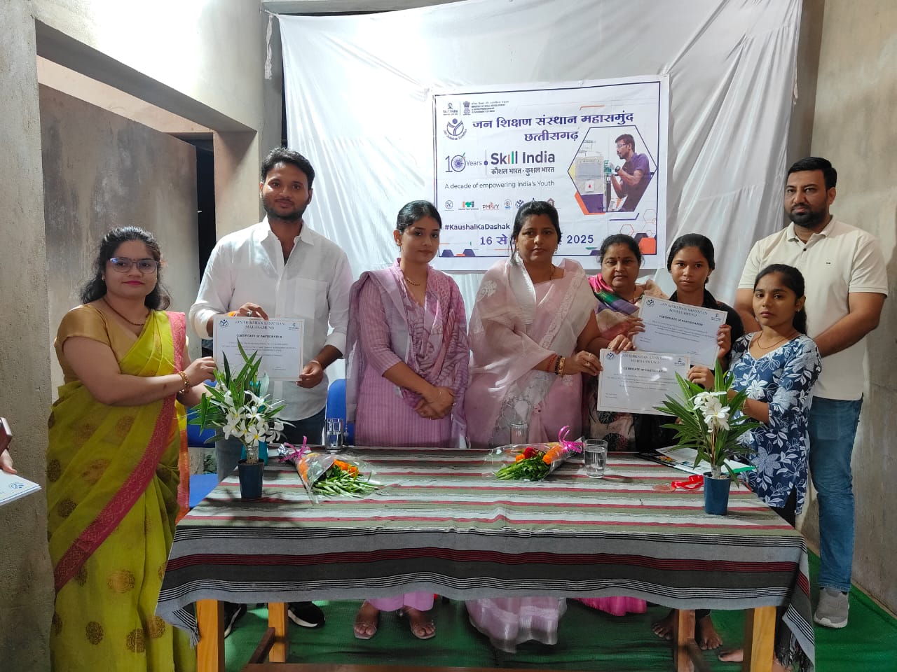 महासमुंद – स्थानीय स्टेशन रोड स्थित जन शिक्षण संस्थान में संचालित कौशल विकास प्रशिक्षण केंद्र में आज पुरस्कार वितरण समारोह का आयोजन किया गया। जिसमें बतौर मुख्य अतिथि नगर पालिका अध्यक्ष निखिलकांत साहू शामिल हुए। विशेष अतिथि कांग्रेस जिलाध्यक्ष डॉ रश्मि चंद्राकर, पार्षद प्रीति बादल मक्कड़, ब्रिजेन बंजारे, निर्मल जैन थे। नपाध्यक्ष साहू व अन्य अतिथियों ने प्रतिभागियों को प्रमाण पत्र प्रदान कर सम्मानित किया। श्री साहू ने संबोधित करते हुए कहा कि कौशल प्रशिक्षण केन्द्रों के माध्यम से युवा हुनरमंद बनकर अपना स्वरोजगार कर सकते हैं। कौशल विकास केंद्र आज युवाओं में स्किल डेवलपमेंट कर उन्हें आगे बढ़ने का मार्ग प्रदान कर रहे हैं। इस तरह के आयोजनों से कौशल भारत, कुशल भारत अभियान की भावना और मजबूत होता है। साथ ही युवाओं को प्रोत्साहित व प्रशिक्षित कर आत्मनिर्भर भारत की दिशा में सहायक सिद्ध हो रहा है। कार्यक्रम को कांग्रेस जिलाध्यक्ष डॉ रश्मि चंद्राकर ने भी संबोधित किया। उन्होंने कहा कि यह प्रशिक्षण केंद्र युवाओं में कौशल विकास के लिए महत्वपूर्ण है। इस अवसर पर प्रशिक्षण केंद्र के प्रशिक्षक गण व प्रतिभागी युवा बड़ी संख्या में उप स्थित थे।