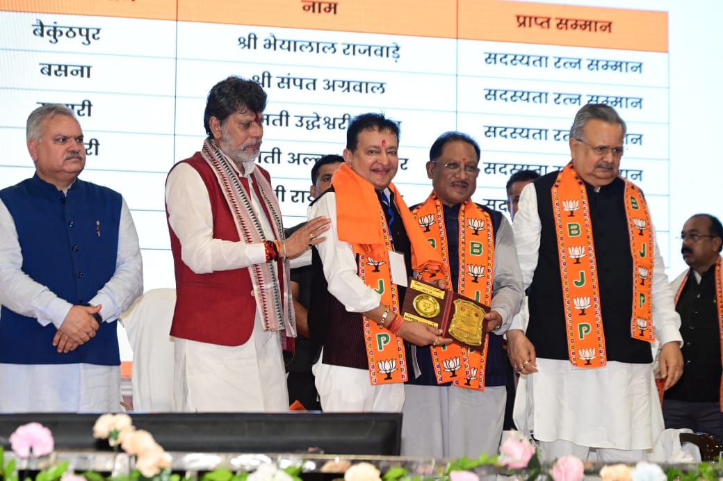 रायपुर – भारतीय जनता पार्टी द्वारा चलाए जा रहे “संगठन महापर्व” के अंतर्गत प्राथमिक सदस्यता अभियान का आयोजन नवा रायपुर स्थित मुख्यमंत्री निवास में भव्यता और गरिमा के साथ संपन्न हुआ। इस अवसर पर भाजपा संगठन के प्रति समर्पित सेवाओं और सक्रिय योगदान के लिए विधायक डॉ. संपत अग्रवाल को “सदस्यता रत्न” सम्मान से अलंकृत किया गया। पत्रकारों से बातचीत में डॉ. अग्रवाल ने भावुक होते हुए कहा, “मेरा परिवार, भाजपा परिवार।” उन्होंने इस सम्मान को समर्पित भाव से उन हजारों कार्यकर्ताओं को समर्पित किया, जिन्होंने सदस्यता अभियान को जन-जन तक पहुंचाने में अहम भूमिका निभाई। उन्होंने बताया कि इस अभियान के तहत छत्तीसगढ़ में 10,000 से अधिक लोगों ने भाजपा की प्राथमिक सदस्यता ग्रहण की, जो राज्य के लक्ष्य की सिद्धि में एक महत्वपूर्ण योगदान रहा। मुख्यमंत्री श्री विष्णुदेव साय के हाथों यह सम्मान ग्रहण करते हुए डॉ. अग्रवाल ने इस क्षण को “संगठन के प्रति निष्ठा और सेवा भावना की स्वीकृति” बताया। उन्होंने भाजपा के 2024 सदस्यता अभियान की सराहना करते हुए इसे ऐतिहासिक उपलब्धि कहा, जिसमें प्रदेश में 60 लाख नए सदस्यों को जोड़ा गया। डॉ. अग्रवाल ने इस सफलता को प्रधानमंत्री नरेंद्र मोदी, भाजपा के राष्ट्रीय अध्यक्ष जे.पी. नड्डा, मुख्यमंत्री विष्णुदेव साय, प्रदेश अध्यक्ष किरण सिंह देव और संगठन के समर्पित कार्यकर्ताओं को समर्पित किया। उन्होंने कहा कि यह सामूहिक प्रयास के बिना संभव नहीं था और संगठन के प्रति आभार व्यक्त करते हुए कहा, “यह सम्मान मेरे नहीं, हम सबके प्रयासों की पहचान है।” इस कार्यक्रम में विधानसभा अध्यक्ष डॉ. रमन सिंह, प्रदेश अध्यक्ष किरण सिंह देव, उप मुख्यमंत्री अरुण साव, मंत्री विजय शर्मा, क्षेत्रीय संगठन महामंत्री अजय जामवाल, संगठन मंत्री पवन साय और केंद्रीय राज्य मंत्री तोखन साहू समेत अनेक मंत्री, विधायक और वरिष्ठ भाजपा पदाधिकारी उपस्थित रहे।