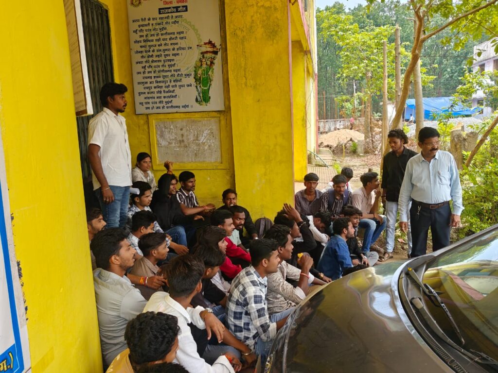 नगरी / राजशेखर नायर – गुरुवार को सुखराम नागे महाविद्यालय के छात्र-छात्राओं ने विभिन्न मांगों को लेकर परिसर का चैनल गेट बंद कर, कॉलेज प्रशासन के विरुद्ध नारेबाजी और धरना प्रदर्शन किया. जन भागीदारी समिति के अध्यक्ष को अपनी मांगों का ज्ञापन सौंपा. छात्र-छात्रों ने बताया की नगरी बस स्टैंड से कॉलेज की दूरी बहुत अधिक है और आने-जाने के लिए वाहन व्यवस्था नहीं होने से अधिकतर छात्र-छात्राओं को पैदल कॉलेज तक पहुंचाना पड़ता है. बारिश और गर्मियों के मौसम में बहुत ज्यादा परेशानियों का सामना करना पड़ता है. कॉलेज परिसर में कैंटीन सुविधा उपलब्ध कराने की मांग भी की और कॉलेज प्रशासन पर आरोप लगाया की आवश्यक दस्तावेज बनवाने कॉलेज के ऑफिस जाने पर बार-बार चक्कर कटवाने का भी आरोप लगाया. छात्रों ने यह भी आरोप लगाया कि कुछ प्राध्यापक समय पर कॉलेज नहीं आते हैं.