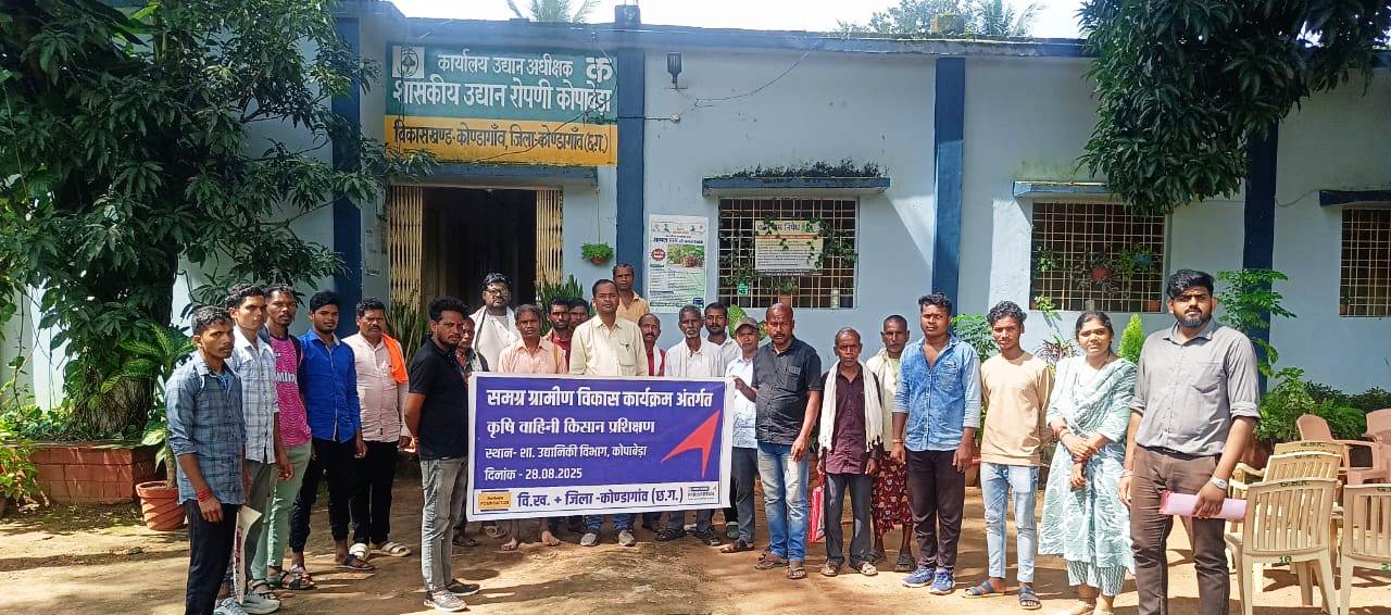 कोंडागांव – उद्यानिकी विभाग के उद्यान सामुनि कोपाबेड़ा, विकासखंड कोंडागांव में समग्र ग्रामीण विकास कार्यक्रम के अंतर्गत एक दिव्य सांस्कृतिक प्रशिक्षण सह भ्रमण का आयोजन किया गया। यह कार्यक्रम अंबुजा फाउंडेशन एवं थोक बैंक परिवर्तन के माध्यम से संचालित डीएपीएल प्रोजेक्ट के तहत आयोजित किया गया।इस कार्यक्रम में कोंडागांव के तटीय क्षेत्र धनसुली, बम्हनी, इस्लनार, सोनाबाल, पल्ली बनियागांव से 30 युवा आदिवासियों ने भाग लिया। प्रशिक्षण में किसानों को कृषि वानिकी, आधुनिक खेती की विरासत एवं दस्तावेजों की जानकारी देकर उनके आय एवं जीवन स्तर में सुधार का प्रयास किया गया।कार्यक्रम के दौरान लोकतंत्र और पुरातत्वविदों की जानकारी प्रदान की गई। अध्यापन अधिकारी श्री लोकेश्वर प्रसाद (उद्यान कप्तान) द्वारा खेत की तैयारी, पौधारोपण की दूरी, कृषि क्षेत्र और कृषि वानिकी से संबंधित महत्वपूर्ण विशिष्टताएँ साझा की गईं। साथ ही विभिन्न दस्तावेज़ दस्तावेज़ों से लेकर कृषकों को जोड़ने पर भी बल दिया गया। प्रशिक्षण के माध्यम से किसानों को यह समझा गया कि कैसे वे कृषि वानिकी को अपनाकर प्रति इकाई अध्ययन से अधिक लाभ अर्जित कर सकते हैं। इससे न केवल उनकी आर्थिक स्थिति में बदलाव आएगा, बल्कि राजनीति में भी सकारात्मक बदलाव आएगा।इस अवसर पर अंबुजा फाउंडेशन की ओर से श्रीमती नोज़ीशौशी, विकास ठाकुर एवं अधिकारी कर्मचारी शामिल हैं।