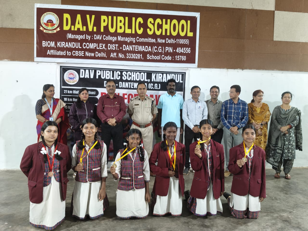 किरंदुल — डी.ए.वी. राज्य स्तरीय खेलकूद प्रतियोगिता दिनांक 9 सितंबर से 12 सितंबर 2025 तक जगदलपुर में अंडर 17 की छात्र-छात्राओं के लिए विभिन्न प्रतियोगिताओं का आयोजन किया गया था जिसमें छत्तीसगढ़ के डी. ए.वी.विद्यालय के 6 क्लस्टर के 97 विद्यालय के,1020 प्रतिभागियों ने भाग लिया था , जिसमें डी.ए.वी.पब्लिक स्कूल किरंदुल के खेलकूद प्रभारी शिक्षक मनोज सिंह एवं तृप्ति श्रीवास्तव के कुशल मार्गदर्शन एवं नेतृत्व में प्रतिभागियों ने विद्यालय का प्रतिनिधित्व किया और विभिन्न प्रतियोगिताओं में उत्कृष्ट प्रदर्शन कर स्वर्ण पदक एवं कांस्य पदक प्राप्त कर विद्यालय को गौरवान्वित किया ।