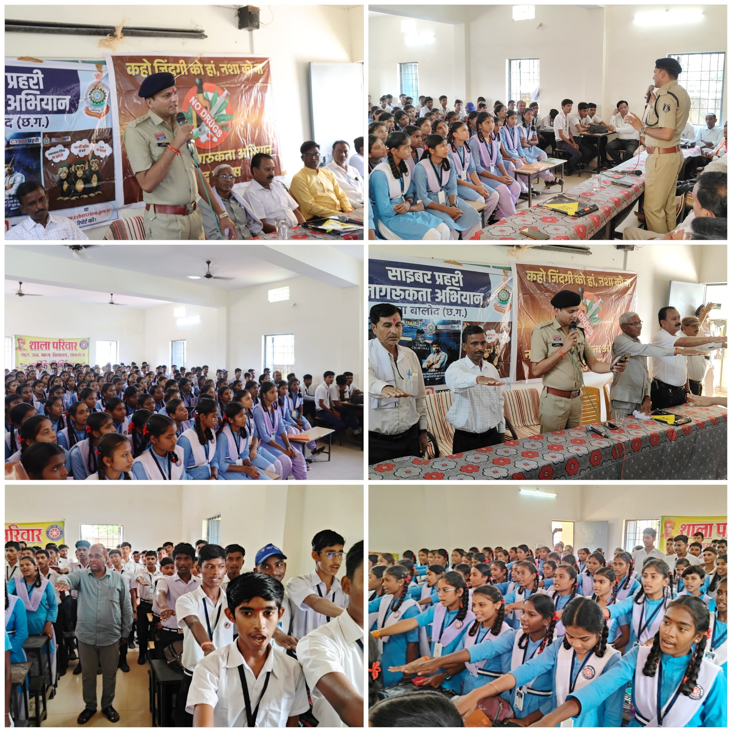 बालोद – दिनांक 14/10/2025 को पुलिस अधीक्षक बालोद योगेश कुमार पटेल के कुशल नेतृत्व एवं दिशा-निर्देशन में एवं अति. पुलिस अधीक्षक श्रीमती मोनिका ठाकुर के मार्गदर्शन में , एसडीओपी देवांश सिंह राठौर के पर्यवेक्षण में बालोद पुलिस द्वारा जिले में निरंतर साइबर सुरक्षा, नशामुक्ति एवं यातायात जागरूकता कार्यक्रम आयोजित किए जा रहे हैं। इसी क्रम में आज शास. हायर सेकेंडरी विद्यालय जगन्नाथपुर सांकरा में जागरूकता कार्यक्रम में एसडीओपी देवांश सिंह राठौर द्वारा साइबर जागरूकता के तहत विद्यालय के छात्र-छात्राओं ,शिक्षकों और उपस्थित गणमान्य नागरिकों को विस्तारपूर्वक जानकारी दी गई। कार्यक्रम की शुरुआत मां सरस्वती जी की वंदना और राज्यगीत गाकर किया गया।