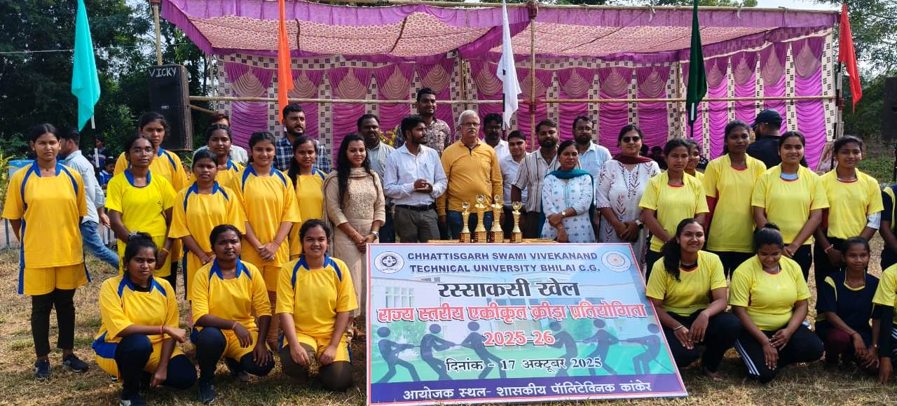 कांकेर – छत्तीसगढ़ स्वामी विवेकानंद टेक्निकल यूनिवर्सिटी भिलाई द्वारा आज राज्य अधिकृत मान्यताप्राप्त क्रीड़ा प्रतियोगिता का आयोजन किया गया। इसके तहत आयोजित रॉकेट पॉलिटेक्निक कंकेर को रसासाकी खेल के आयोजन की जिम्मेदारी मिली।इस प्रतियोगिता में पुरुष वर्ग में फ़ोर्सेज़ पॉलिटेक्निक कांकेर ने प्रथम स्थान प्राप्त किया। वहीं महिला वर्ग में कंकाल पॉलिटेक्निक कांकेर ने प्रथम एवं सचिवालय पॉलिटेक्निक धमतरी में द्वितीय स्थान प्राप्त किया। इस प्रकार के रिचर्डसन से इंटर यूनिवर्सिटी प्रतियोगिता के लिए टीम का चयन किया गया। कार्यक्रम के आयोजन के लिए संस्था के कार्यशाला डॉ. शैलेन्द्र सिंह ने कार्यक्रम समिति को बधाई दी। इस अवसर पर क्रीडा अधिकारी, पर्यवेक्षक, रैफरी सहित संस्था के सभी तकनीकी कर्मचारी एवं छात्र- नियुक्त शामिल थे।