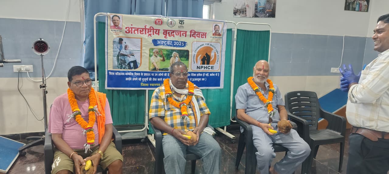 कोंडागांव – डॉक्टर नूपुर राशी पाना के निर्देश मुख्य चिकित्सा स्वास्थ्य एवं अधिकारी डॉक्टर आर के सिक्योरिटी के निर्देशानुसार जिला अस्पताल कोंडागांव के फिजियोथायरेपी विभाग में वृद्धजन दिवस मनाया गया। मुख्य चिकित्सा एवं स्वास्थ्य अधिकारी से प्राप्त जानकारी के अनुसार कोंडागांव में 1 अक्टूबर से 31 अक्टूबर 2025 तक मध्य विशेष स्वास्थ्य सुविधा योजना जारी की जा रही है।यह ज्ञात हो कि भारत सरकार द्वारा वृद्धजन ड्राइविंग स्थानीय और वैश्विक कार्रवाई: हमारी आकांक्षाएं हमारा कल्याण और अस्तित्व] हमारे अधिकार ” थीम रखी गई है। जिला अस्पताल कोंडागांव के फिजियोथैरेपिस्ट डॉ. पद्मनाथ बघेल और डॉ. अंजू झा तथा सहायकिका उपाशी नेताम के द्वारा वृद्धजनों को स्कूल श्रीफल कंपनी का पुष्पांजलि अर्पित करने का स्वागत किया गया।उक्त कार्यक्रम में 60 वर्ष से अधिक आयु वाले हितग्राही का इलाज किया जा रहा है। ग्राम सरगीपारा कोंडागांव निवासी 67 वर्ष के श्री मिच्चा राम 6 माह से रिकवर के जाम होने से फ्रोजन शोल्डर से परेशान थे। हाथों को ऊपर नहीं उठा पा रहे हैं, जो अभी फिजियोप्लास्टी से पूरे तरह के हाथों को ऊपर उठा पा रहे हैं। ऐसे ही कई वृद्धजन जिनमें फिजियोथैरेपी की जरूरत है वे अपना इलाज करा सकते हैं।