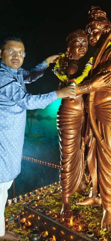 महाराजा गुहा निषाद राज चौक मोहभट्टा मे मर्यादा पुरुषोत्तम श्री राम चंद्र जी एवं मित्र अनन्य भक्त महाराजा निषाद राज जी गले लगे प्रतिमा पर माल्यार्पण कर दीपोत्सव हर्षोल्लास के साथ मनाया – बोधी राम निषाद।