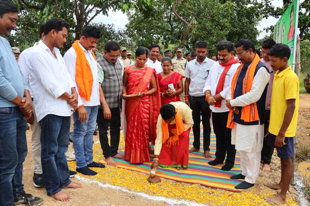 बीजापुर – छत्तीसगढ़ के उपमुख्यमंत्री एवं गृहमंत्री विजय शर्मा आज बीजापुर जिले के अत्यंत सुदूर नक्सल प्रभावित क्षेत्र ग्राम नंबी पहुंचे। उन्होंने यहां नंबी चौक से नंबी जलप्रपात पर्यटन स्थल तक 94.48 लाख रुपये की लागत से बनने वाली डब्ल्यूबीएम सड़क का भूमिपूजन किया। यह सड़क गांव से नंबी जलप्रपात तक सीधे जाएगी। जिससे क्षेत्र में पर्यटन को बढ़ावा मिलेगा और स्थानीय युवाओं को रोजगार के अवसर प्राप्त होंगे। उन्होंने मोटर सायकिल पर सवार होकर रोड निर्माण हेतु सड़क का भी निरीक्षण किया।