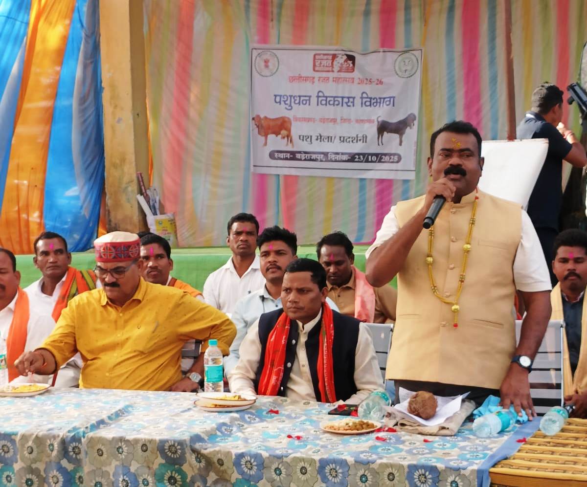 कोंडागांव – छत्तीसगढ़ रजत महोत्सव वर्ष 2025-26 के तहत विकासखंड विशालराजपुर के ग्राम बड़े राजपुर में पशुधन विकास विभाग द्वारा गुरुवार को विकासखंड राष्ट्रीय पशु मेला एवं प्रदर्शनी का आयोजन किया गया, जिसमें पशुपालकों ने बढ़-चढ़कर हिस्सा लिया। इस दौरान पशु चिकित्सा शिविर का आयोजन भी किया गया, जिसमें टीकाकरण, बधियाकरण और दवा वितरण किया गया। कार्यक्रम के मुख्य अतिथि केशकाल के अध्यक्ष नीलकण्ठ टेकाम ने अपने उद्बोधन में पशुपालन के महत्व को बताया और दुग्ध उत्पादन के संबंध में प्रकाश डालते हुए किसानों को खेती के साथ-साथ पशुपालन को भी बताया। साथ ही पशु मेले में आयें पालकों का हालचाल जाना और निरीक्षण के दौरान नामांकन की जानकारी ली। ग्राम पंचायत बड़ी राजपुर की सरपंच श्रीमती हेमबाई मरकाम, जिला अध्यक्ष श्रीमती संगीता पोयाम, लालाराम मरकाम, विधायक प्रतिनिधि राजपुर ने अपने उद्बोधन में पशु पालन पर प्रकाश डाला और अपना अनुभव साझा किया। डॉ एम. बी. सिंह उपसंचालक पशु चिकित्सा सागर कोंडागांव के स्वागत भाषण में सिल्वासा क्षेत्र की जानकारी दी गई। वहीं पशु चिकित्सक सुदरन मरकाम वरिष्ठ चिकित्सा अधिकारी द्वारा पशुपालकों को पदनाम पात्रता एवं की जानकारी दी गई। पशु मेला प्रदर्शनी विवरण डॉ. चार्ली पोर्टे, डॉ. कस्तूरी प्रधान पशु चिकित्सा सहायक सर्जन केशकाल ने की। पशु एवं पालकों को पासपोर्ट के लिए पुरस्कार प्रमाण पत्र दिया गया है। पशु मेले को सफल बनाने में सहायक अधिकारी राम नेताम, नेता राजेशम, सुरेंद्र प्रसाद मरकाम, सोनसाय सोम, यशवंत सिन्हा सहायक पशु चिकित्सा क्षेत्र अधिकारी एवं कर्मचारी जलधर कोरराम, लाल सिंह मरकाम, श्रीमती कल्पना रावटे, ओम प्रकाश एवं मोबाइल नागा वेटनरी यूनिट के अधिकारी कर्मचारी उपस्थित रहे। कार्यक्रम के अंत में डॉ. प्रिय लाल ठाकुर वयोवृद्ध पशु चिकित्सा अधिकारी पशु निबंधक विश्रामपुरी द्वारा वयोवृद्ध पशु चिकित्सा अधिकारी का स्वागत किया गया है।