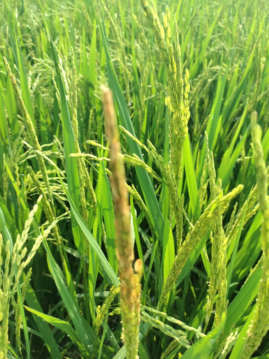 धान में झुलसा रोग (ब्लास्ट) दिखाई देता है