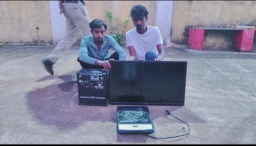 स्कुल में रखे एक नग इण्डेक्शन, माईक सेट एवं स्मार्ट टीवी को आरोपियों के कब्जे से पुलिस ने किया बरामद।