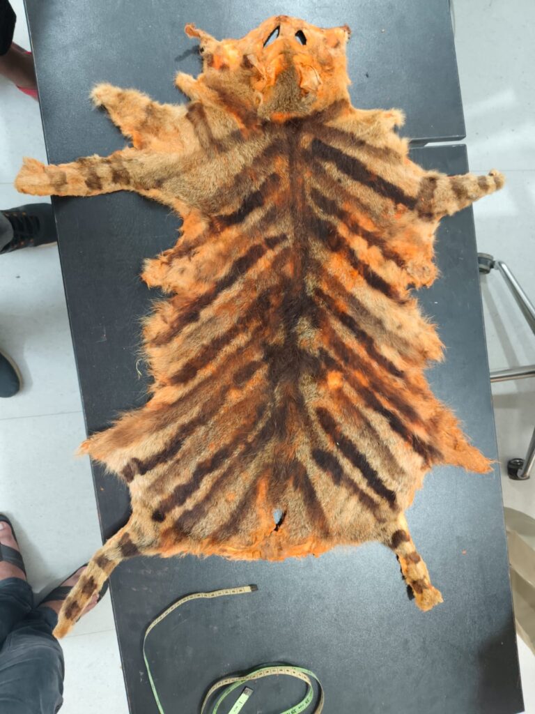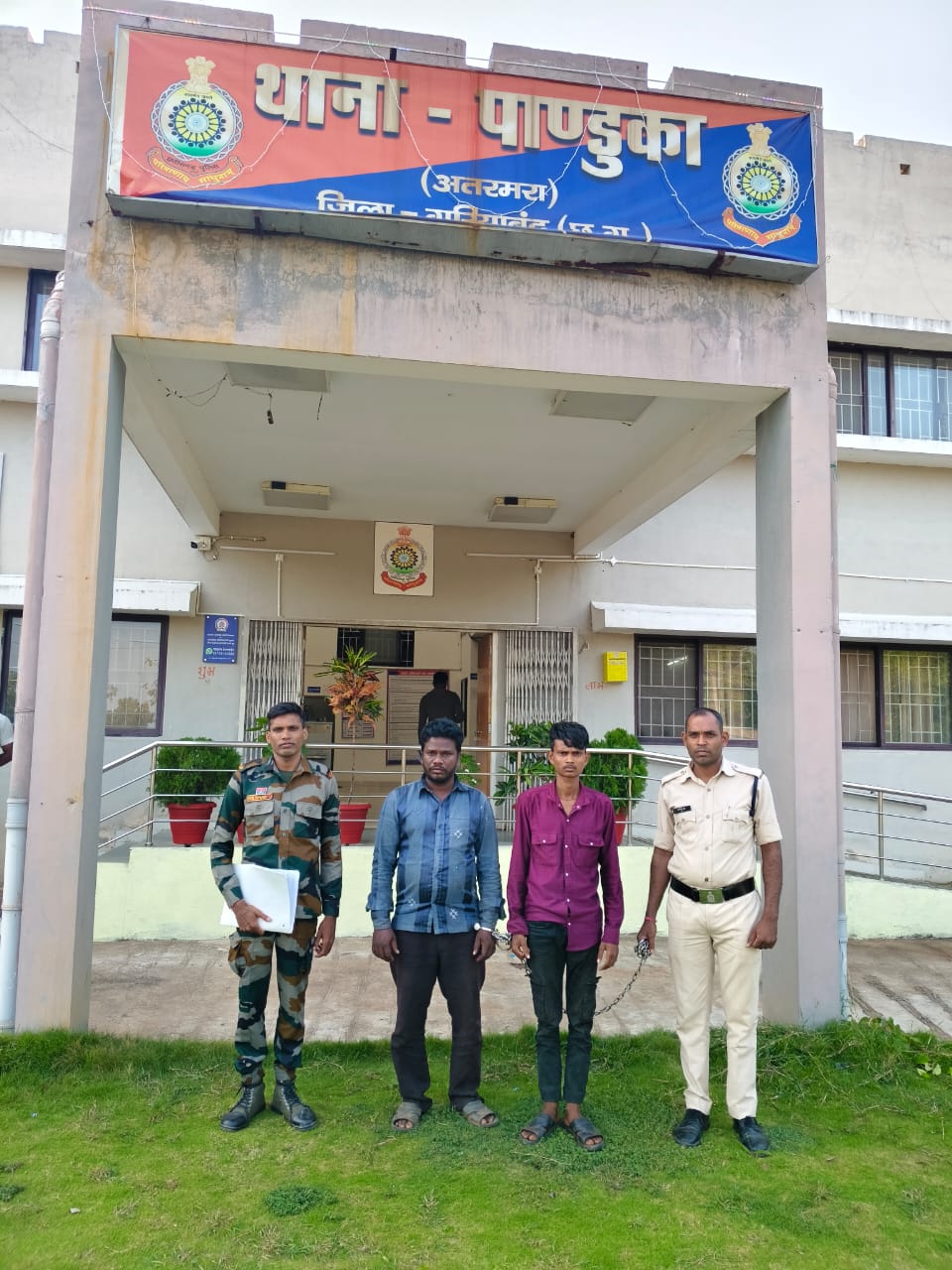 पांडुका – गरियाबंद पुलिस के वरिष्ठ अधिकारियों के द्वारा समस्त थाना प्रभारियों को गांजा, हीरा, वन्य जीव की अवैध परिवहन एवं बिक्री पर रोक लगाने के कड़े निर्देश दिये गये थे। जिसके परिपालन में समस्त थाना प्रभारियों के द्वारा अपने-अपने थाना क्षेत्रांतर्गत मुखबीर एवं थाना पेट्रोलिंग को सक्रिय किया गया था। इसी क्रम में थाना पाण्डुका को मुखबीर सूचना मिला कि ग्राम टोईयामुडा मोड एनएच 130 सी, मेन रोड के पास दो व्यक्ति थैले में जंगली जानवर का खाल रखकर बिक्री हेतु ग्राहक की तलाश करते मोड के पास बने चबूतरा में बैठे है। कि सूचना पर थाना प्रभारी द्वारा अपनी टीम तैयार कर मुखबीर द्वारा बताये स्थान ग्राम टोईयामुडा मोड एनएच 130 सी, मेन रोड के पास पहूंचकर घेराबंदी कर रेड कार्यवाही किये दो व्यक्ति मोड के पास बने चबूतरा में संदिग्ध अवस्था में दोनों बैठे थे और दोनों के बीच में एक पुरानी इस्तेमाली रंगीन चटकदार कपडेनुमा थैला रखे थे जिसका नाम पता पूछने पर अपना-अपना नाम 1. राकेश सौरा पिता पीलाराम सौरा उम्र 35 साल निवासी लखौली थाना आरंग जिला रायपुर (छ.ग.) 2. राकेश कुमार सौरा पिता अमिताभ सौरा उम्र 22 वर्ष निवासी लखौली थाना आरंग जिला रायपुर (छ.ग.) संदेहियों की तलाशी कराने लेने के दौरान उनके कब्जे से एक पुरानी इस्तेमाली रंगीन चटकदार कपडेनुमा थैला था। जिसके अंदर एक वन्य प्राणी का खाल जैसा मिला। पुलिस टीम द्वारा संदेहियों से वन्य प्राणी का खाल कब्जे में रखने एवं खरीदी बिक्री करने के संबंध में पुछे जाने पर कोई वैध दस्तावेज नहीं होना बताया गया। दोनो आरोपियों के कब्जे से जंगली बिल्ली के खाल को जप्त कर आरोपियों के खिलाफ वैधानिक कार्यवाही करते हुए, अपराध धारा 9, 2, 39,44,51,52 वन्य जीव (संरक्षण) अधिनियम 1972 का पाये जाने से विधिवत गिरफ्तार कर न्यायिक हिरासत में भेजा गया।
